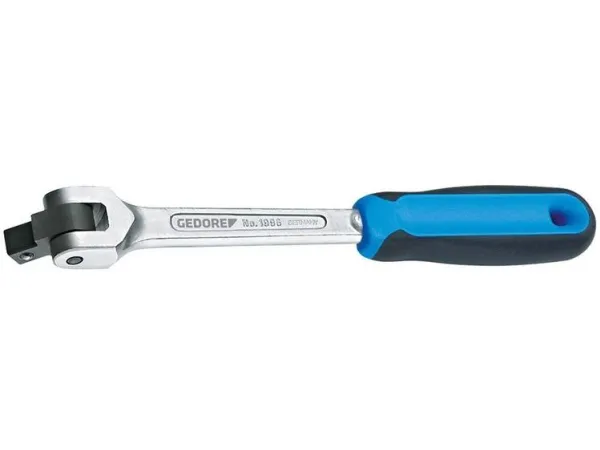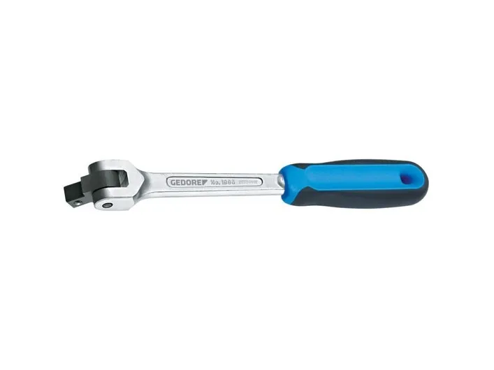 Acc. to DIN 3122, ISO 3315. Non-slip 2-component handle with hanging hole. For hand-operated sockets with square drive as per DIN 3120, ISO 1174, with ball locking device. Gedore vanadium steel 31CrV3, chrome-plated, polished.