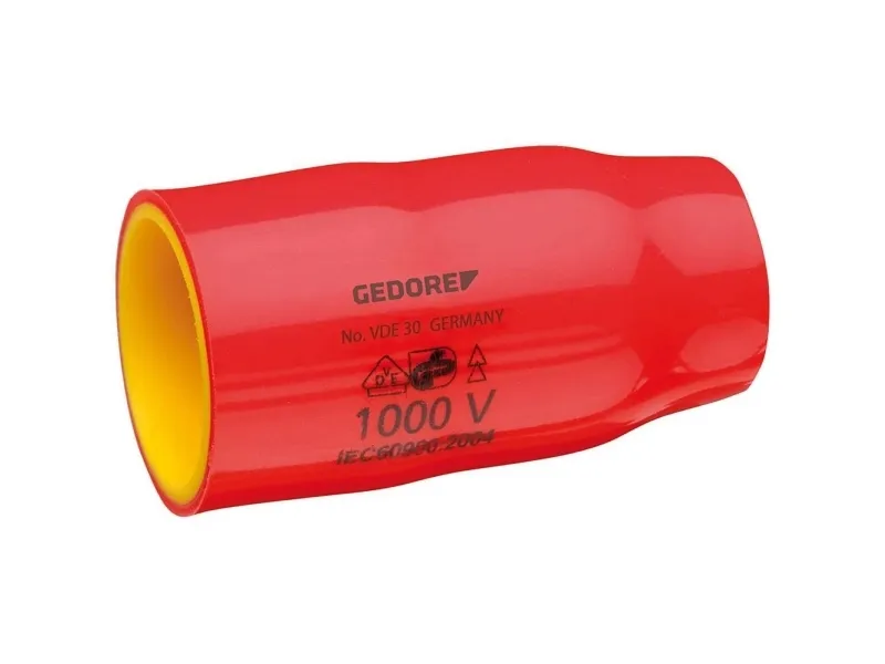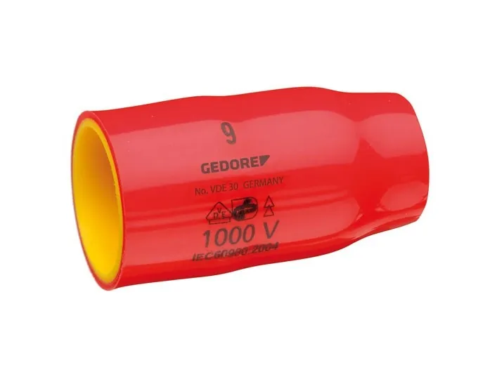 Hexagon socket wrench, hand-operated. With square drive according to DIN 3120 - C 10, ISO 1174. Gedore vanadium steel 31CrV3. VDE insulation up to 1000 V, acc. to EN 60900/IEC 60900, two-ply Check-Tool insulation. 16 - 18 mm insulation overhang.