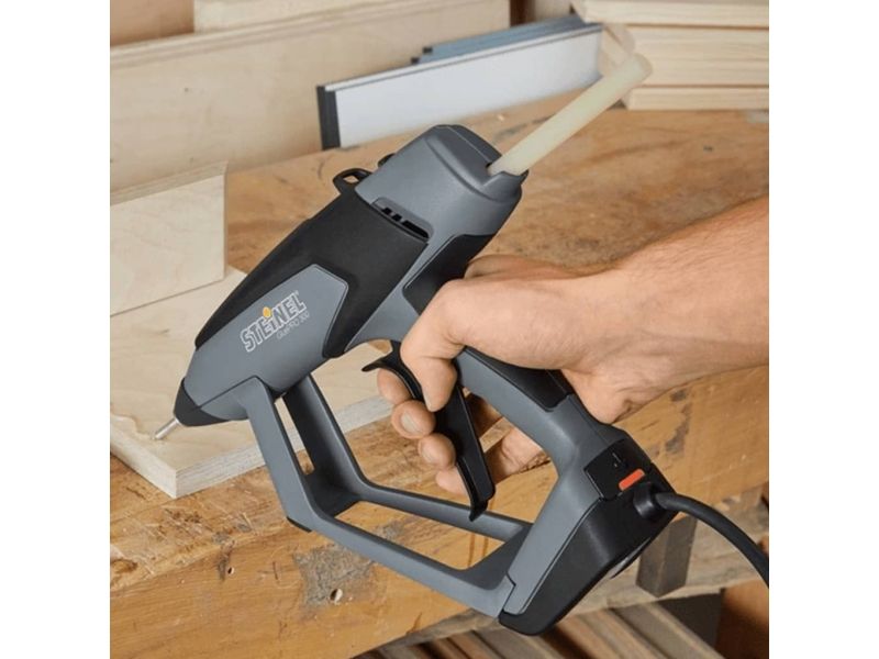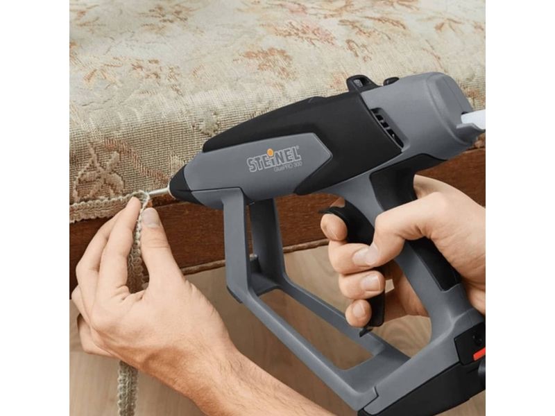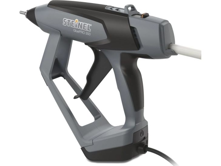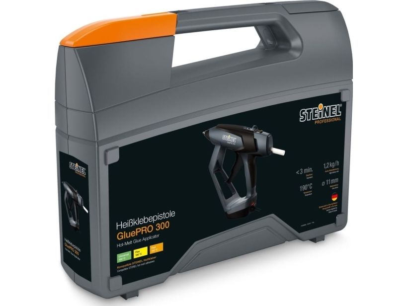 The benchmark. The rugged GluePRO 300 with non-slip grip handle is comfortable to hold and has what it takes to become one of your favorite tools. This hot melt glue applicator is the key to convenient, reliable and tireless gluing work without compromising on anything. Practical stroke adjustment makes it possible to set the quantity of glue per stroke for any specific application. Warm-up time is approximately three minutes.