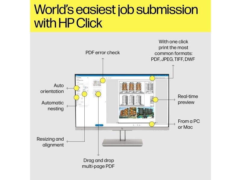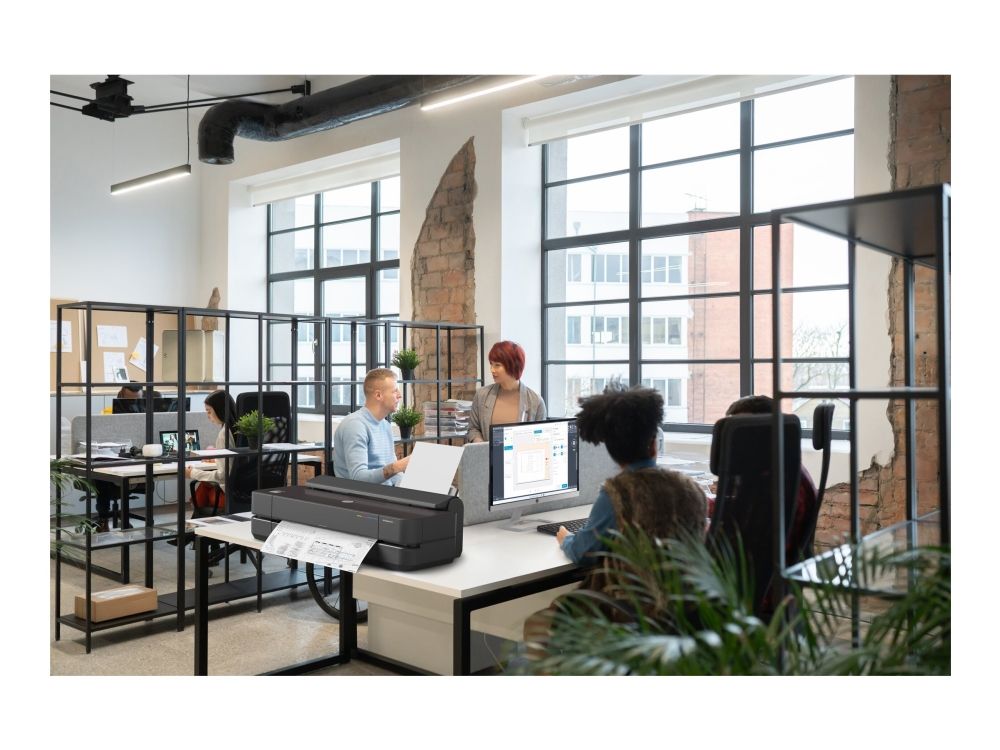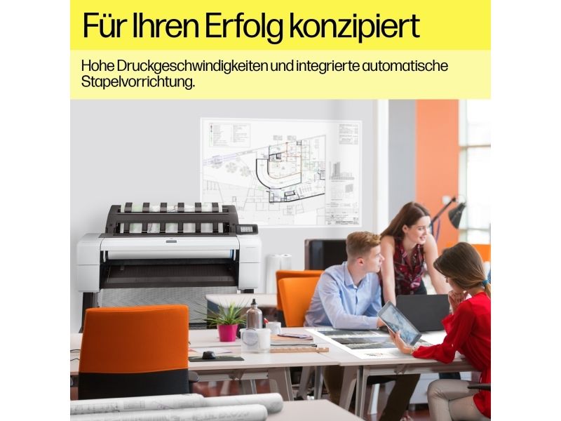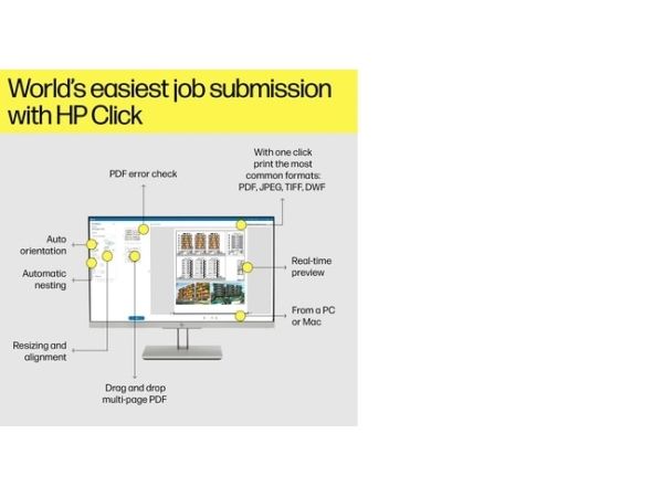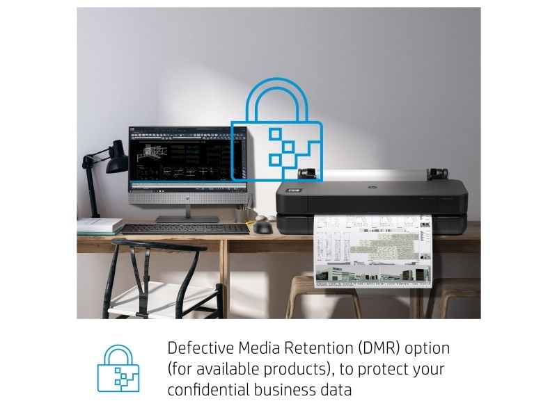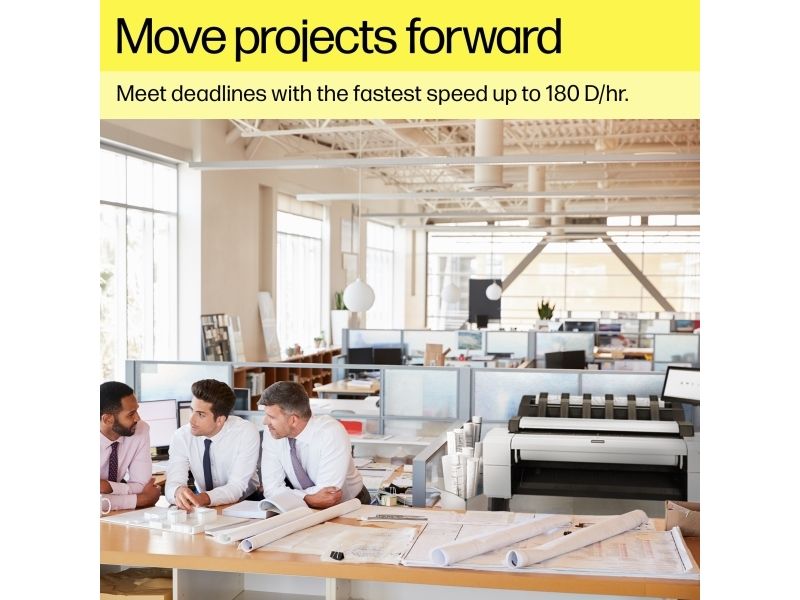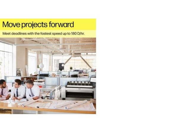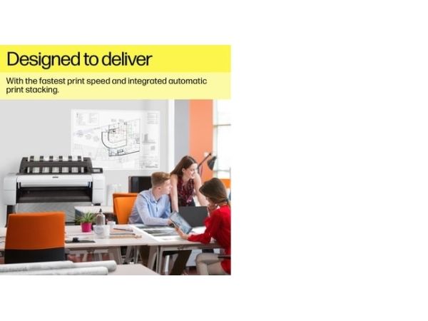 The HP DesignJet T1600dr PostScript printer is a large-format device designed to meet the demands of professionals. With its 36" printing width, it can handle everything from simple CAD drawings to complex color presentations. Its built-in stacker and dual-roll support streamline the printing process, making it more efficient. The printer's connectivity options, including Gigabit Ethernet and mobile printing capabilities, ensure that it can easily fit into any existing workflow. Security is a priority, with features like Self-Encrypting Drive (SED) support and Trusted Platform Module (TPM) to protect sensitive information. The HP DesignJet T1600dr is not only powerful but also environmentally friendly, with ENERGY STAR and EPEAT compliance. Whether you're an architect, engineer, or graphic artist, this printer is designed to deliver high-quality prints while optimizing your productivity and safeguarding your data.