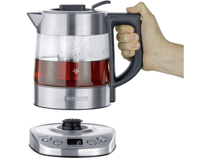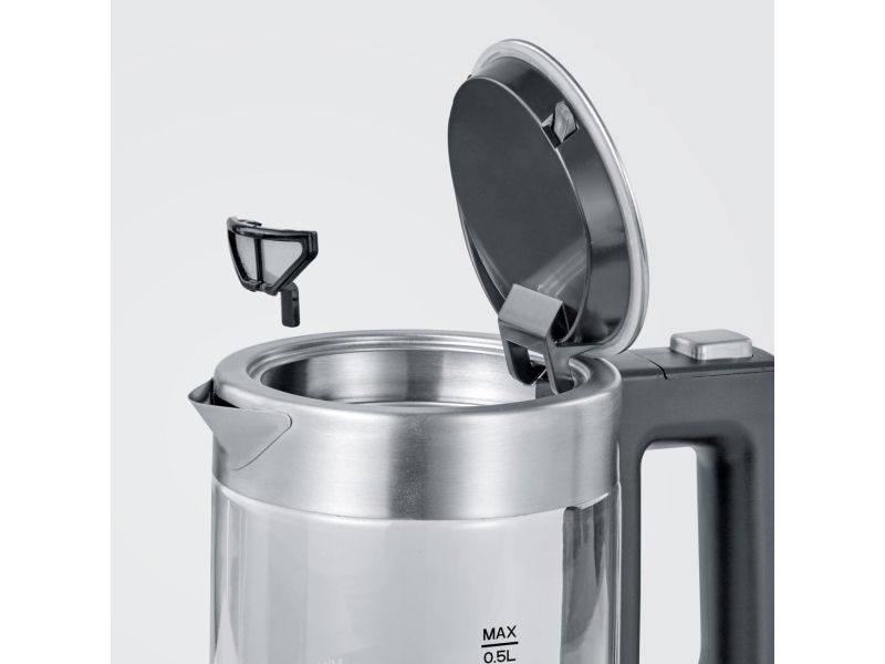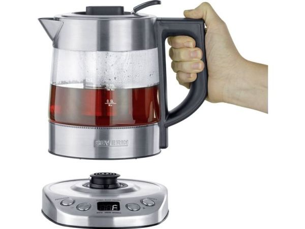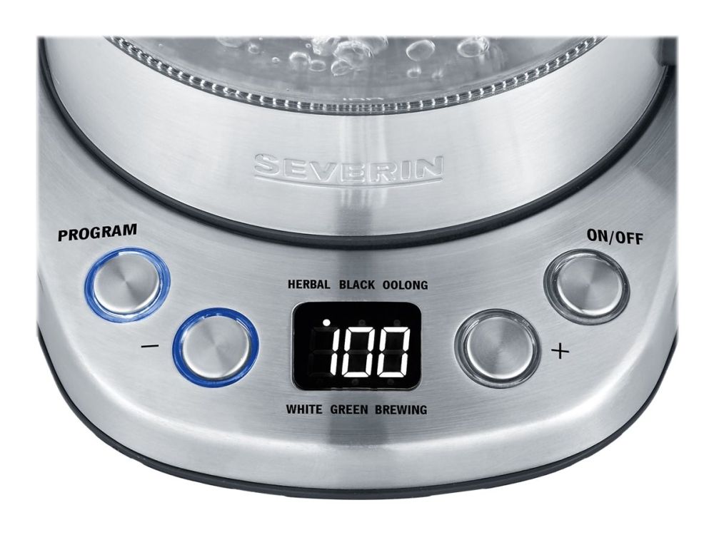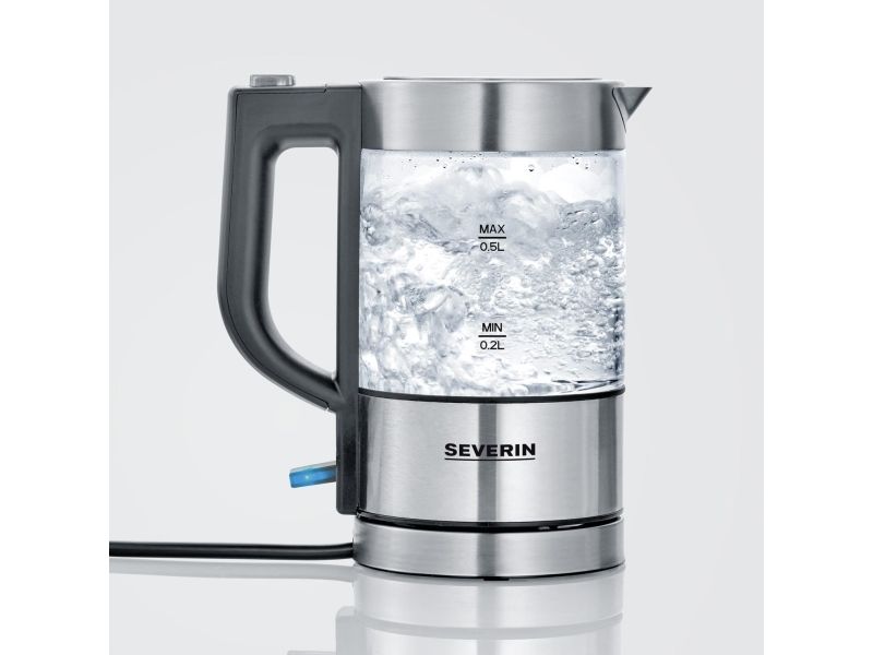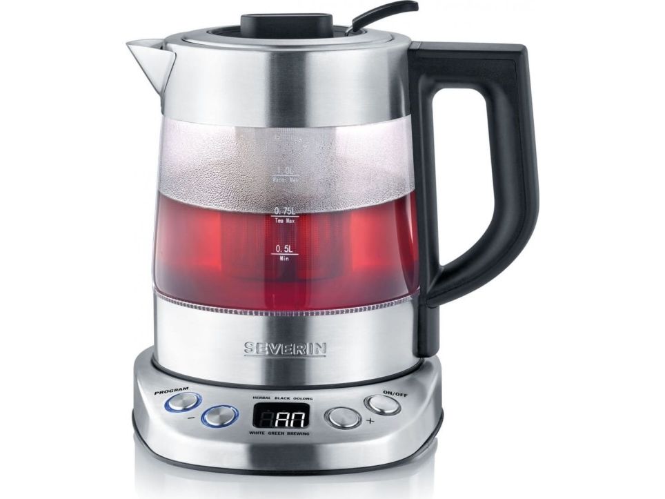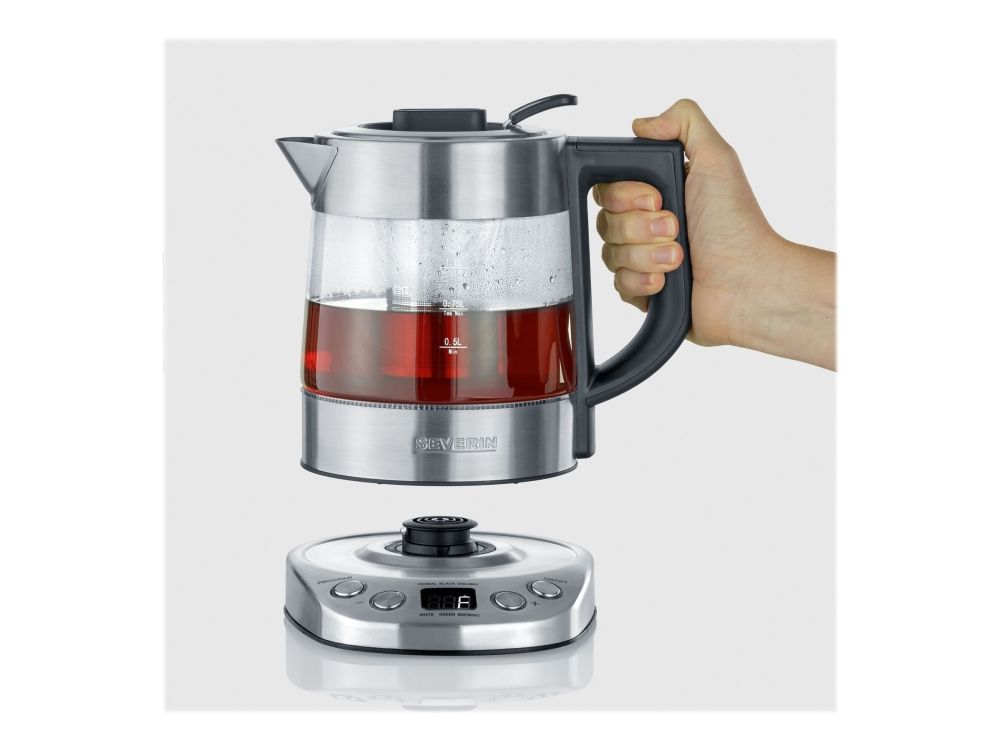 SEVERIN WK 3473 Deluxe Mini - Temaskin/kjele - 1 liter - 2.2 kW - glass/brushed stainless steel/black