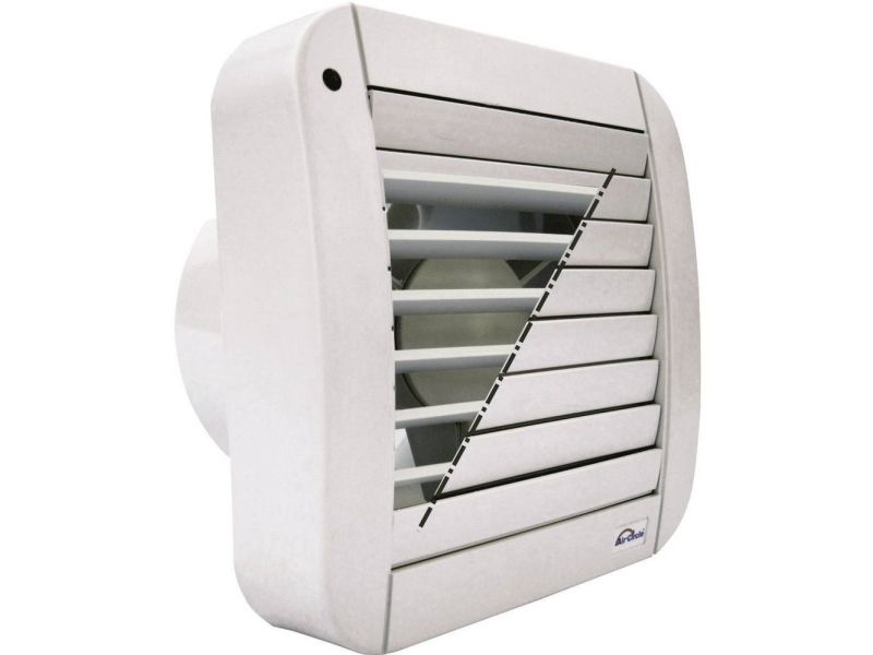 Væg- og loftsventilator Eco-Matic 100 mm Automatisk væg- og loftsventilator med forsinkede og lameller, der arbejder ganske støjsvagt. Dette forhindrer, at der opstår uønsket træk og varmetab ved kørende ventilator. Forsinkelsen forhindrer også insekter i at trænge ind. Et lys på kabinettet signaliserer ventilatorens drift.