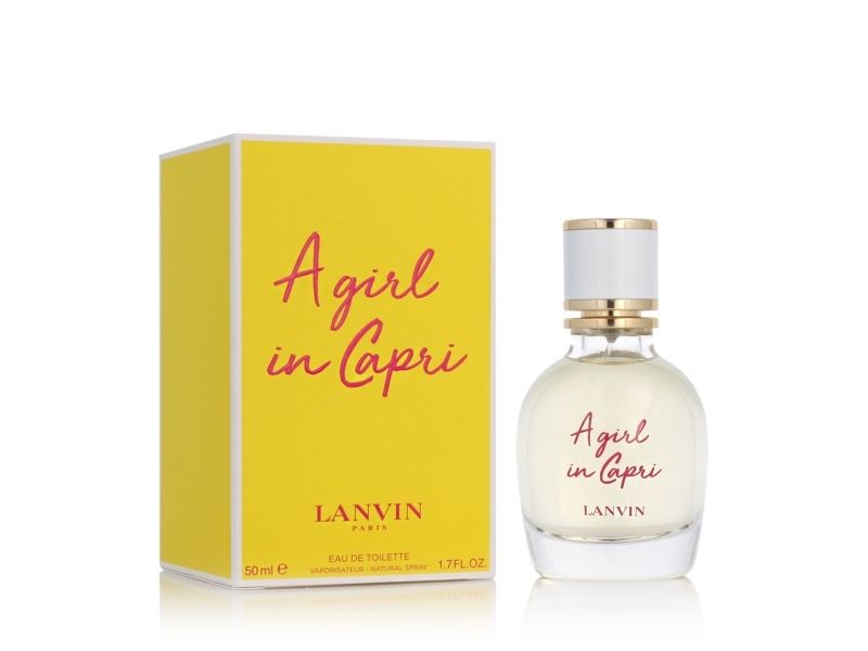 Daydream of the ultimate summer escape with the refreshing scent of A Girl in Capri Eau de Toilette for women This fun 2019 release from Lanvin opens with sparkling top notes of bergamot Primafiore lemon and pink pepper A heart of marine notes and grapefruit blossom transports you to a sunny beach before the dreamy base notes of white musk driftwood and amber embrace your senses