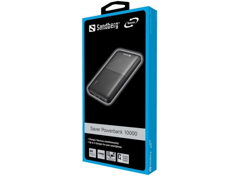 Sandberg Saver Powerbank 10000 er et bærbart batteri som lades via en USB-port og deretter kan overføre strøm til en mobiltelefon eller annen mobil enhet. Med en fulladet Powerbank i vesken kan du være sikker på at du alltid kan lade enhetene dine hvor som helst og når som helst - uten å være avhengig av en stikkontakt. Se frem til en fremtid uten tomme batterier!