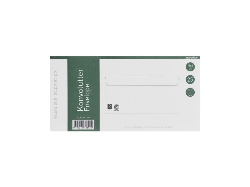 Svanem�rkede hvide rudekuverter med peel & seal lukning.