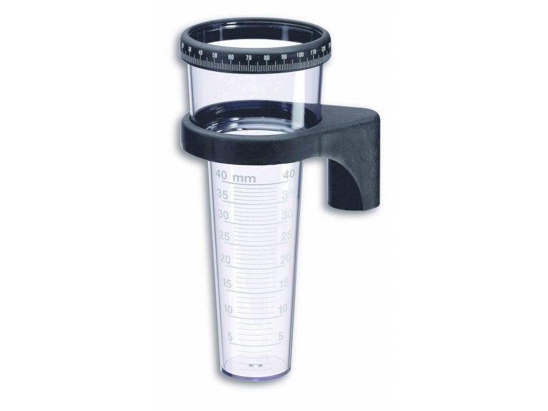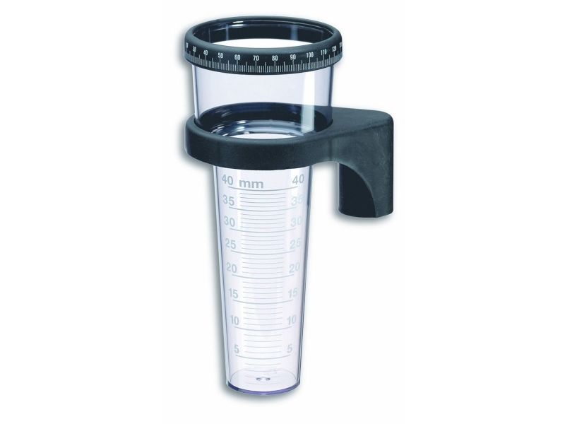 Et praktisk regnmåler til nem og præcis beregning af nedbørsmængden i høj kvalitet og stabil plast. For at resultatet bliver så præcist som muligt, bør regnmåler placeres i en passende stav i en passende højde i ca. en meters højde, som er fri og lodret. Ved tømning kan målecylinderen nemt tages ud af holderen.