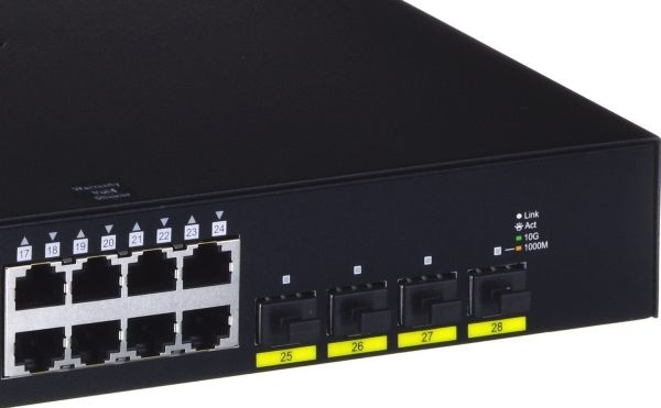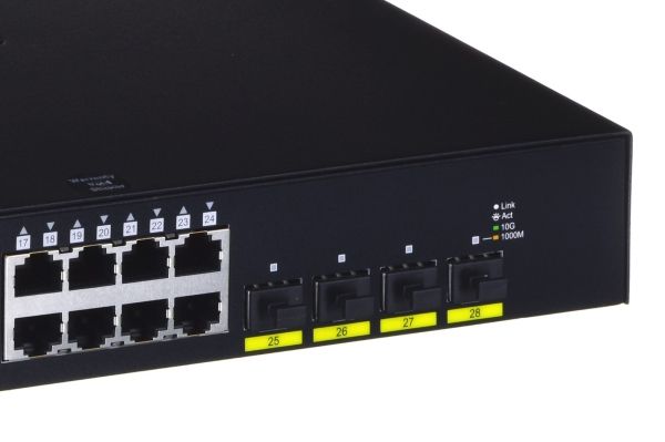 24 x 1000Base-T RJ-45 PoE - 15.4 W 4 x 10GBase-X SFP+ 1 x konsoll RJ-45 styring