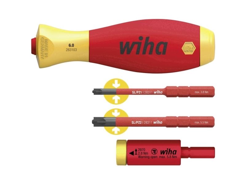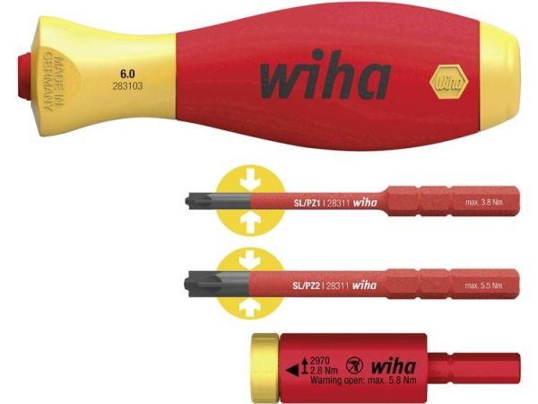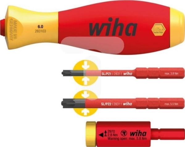 Wiha Wiha easyTorque elektriske momentadaptere med slimVario holder og slimBit SL/PZ 4-stk. i blisterpakning 29701280S4 41478