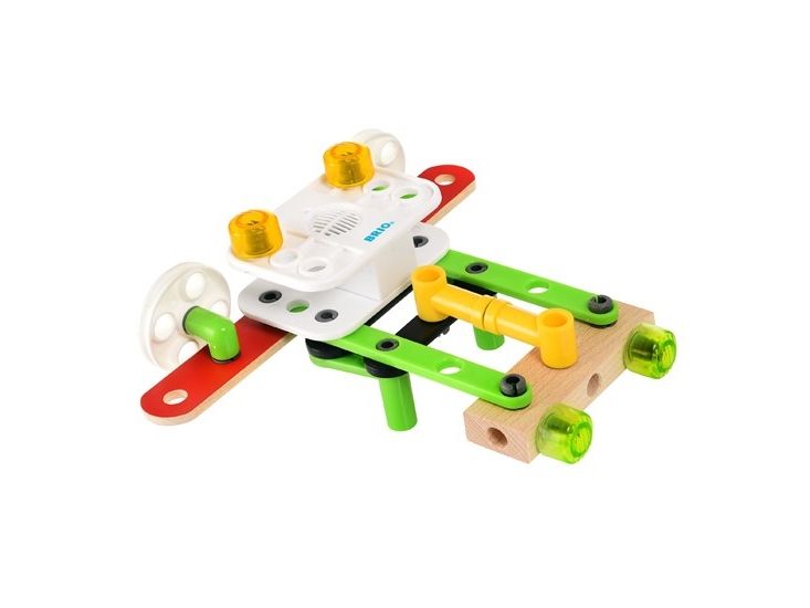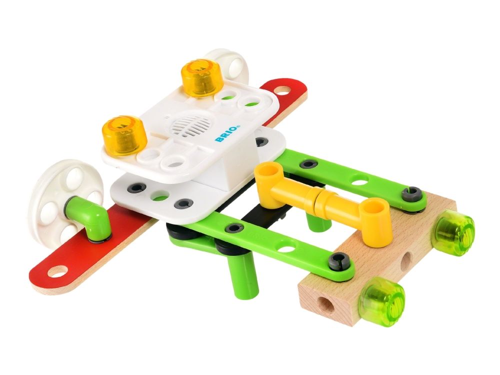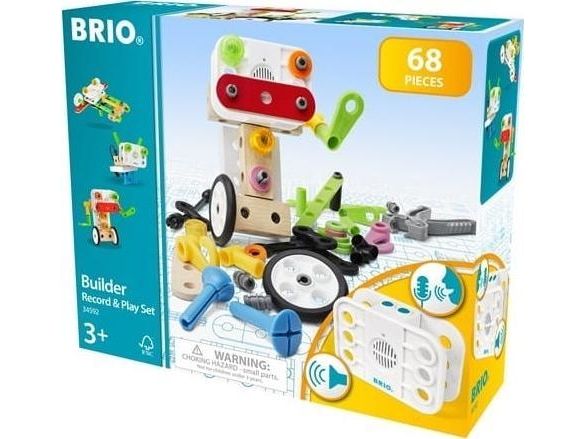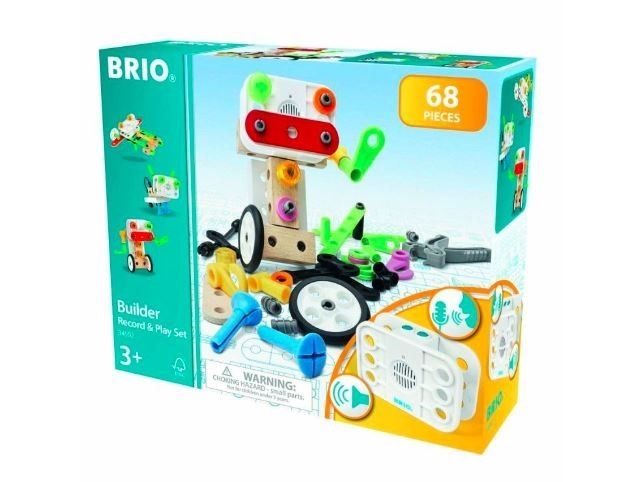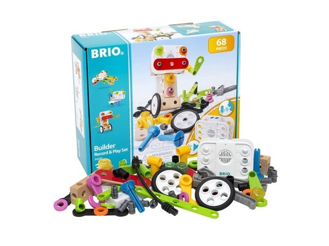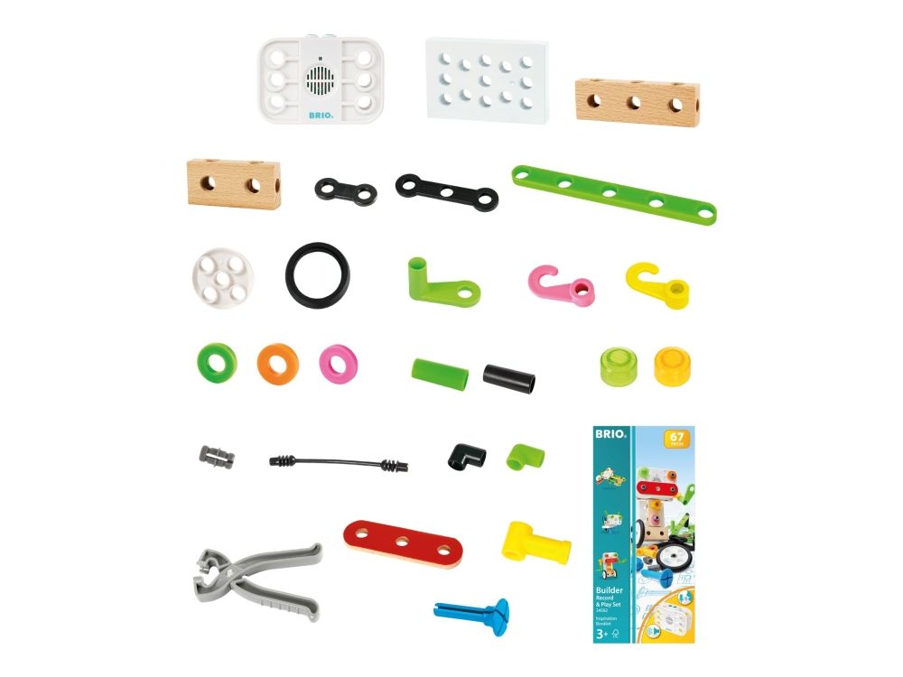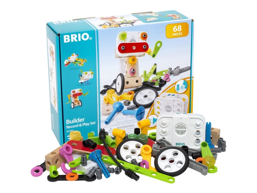 Bring your BRIO Builder creations to life with the BRIO Record & Play Set - the perfect building toy to challenge the imagination of budding engineers. The toy construction set comes with 67 play pieces, a record & play unit and easy-to-use tools to help build your open-ended creations. The record and play unit takes the play to another level as you customise your toys with recorded speech and sounds.