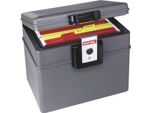 NoFIRE 2037FE Dokumentboks 10 hængeregistraturer (US-Letter) Klammelukning med 2 nøgler. NoFIRE 2037FE dokumentrum fra First Alert beskytter dine dokumenter, medier og værdigenstande pålideligt mod ild og vand. Den er modstandsdygtig over for temperaturer på op til 860 °C i mindst 30 minutter, så dine værdigenstande opbevares sikkert i tilfælde af brand. Dokumentboksen kan heller ikke skade vand, for selv ved komplet neddykning er den vandtæt. Dokumentboksen indeholder et indhold på 17,6 liter, da der også er plads til dokumenter med en A4-størrelse. De kan sorteres med et medfølgende hængeregistraturer. Den er lukket sikkert med en klemmelås, som hører en 2 nøgler, som boksen kan lukkes med.
