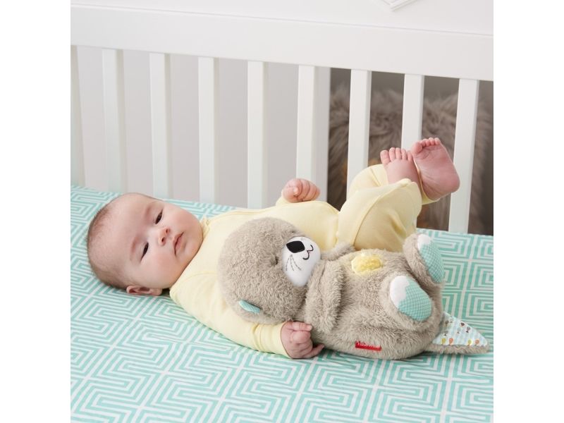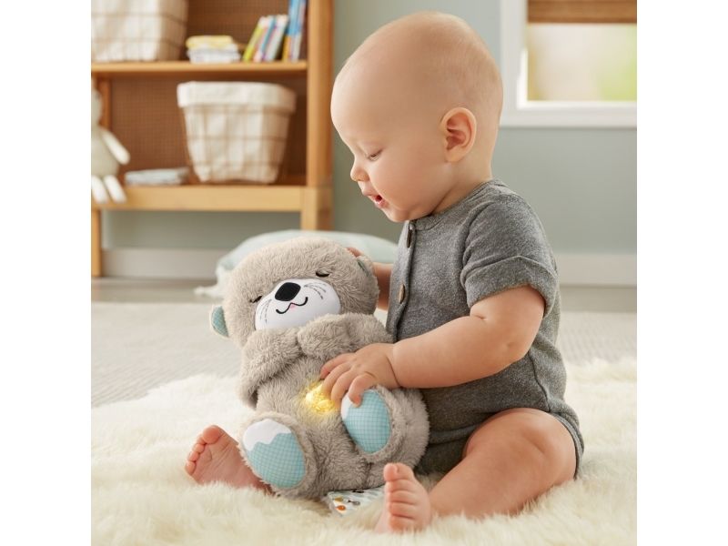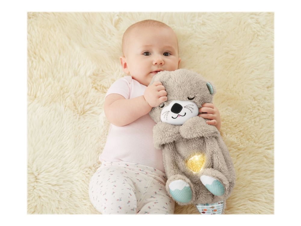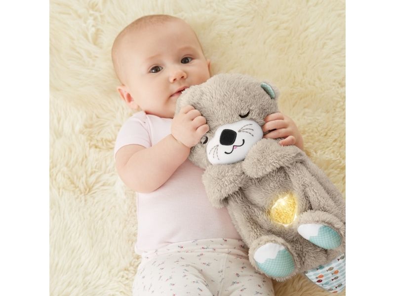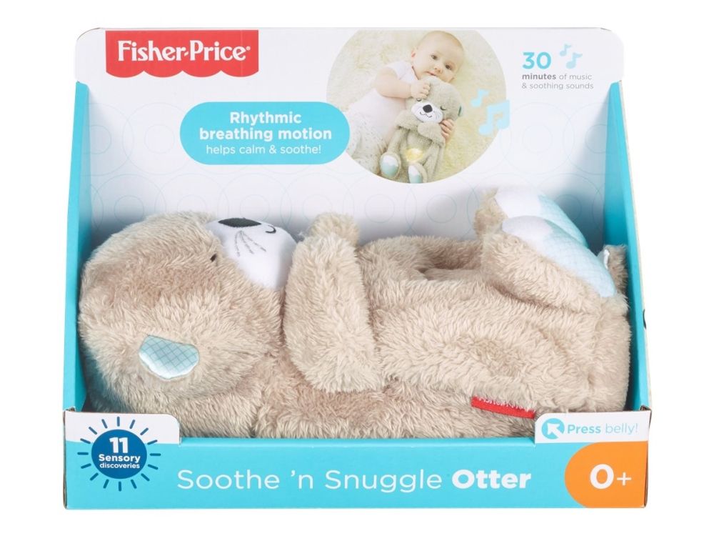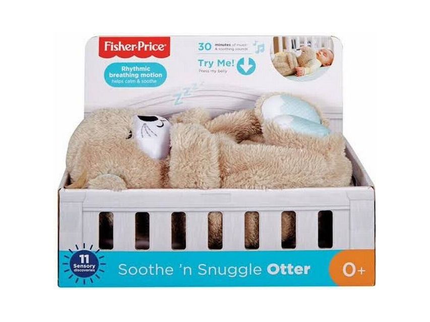 The Fisher-Price Soothe 'n Snuggle Otter is a unique plush soother that helps comfort your baby just like you do. Its soft belly moves up and down in a rhythmic motion that mimics breathing to help soothe your baby naturally, along with up to 30 minutes of calming music, sound effects, and soft lights. With its sweet face, super snuggly fabrics, and satiny tail, the Soothe 'n Snuggle Otter is a perfect cuddle friend for your baby.