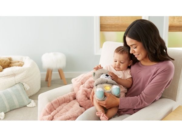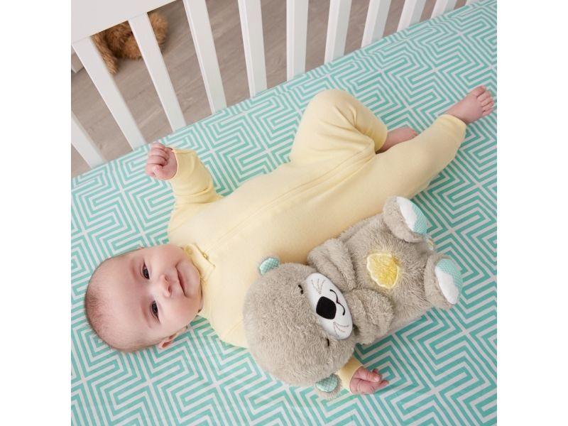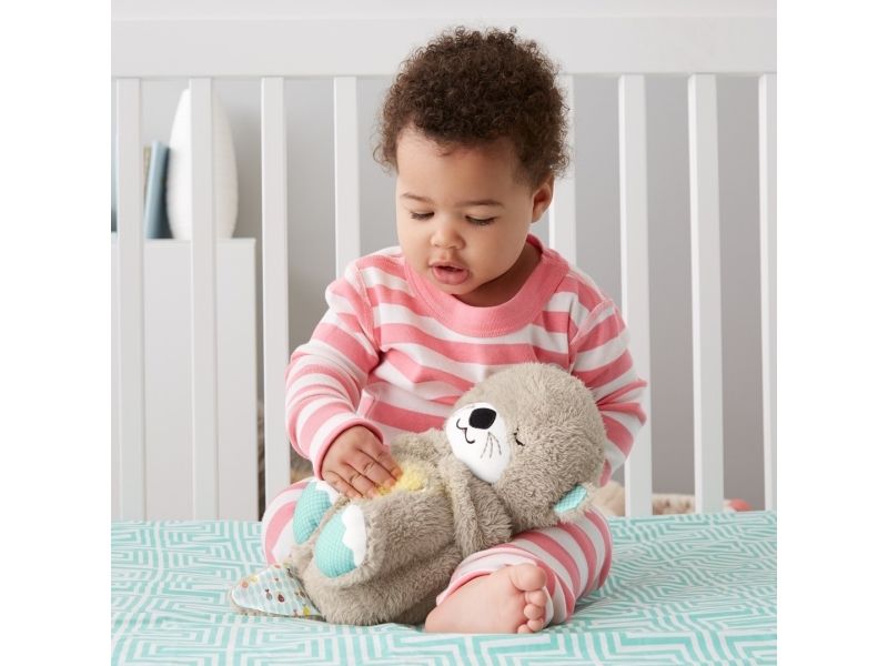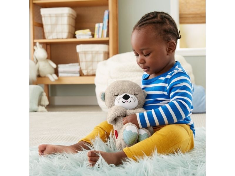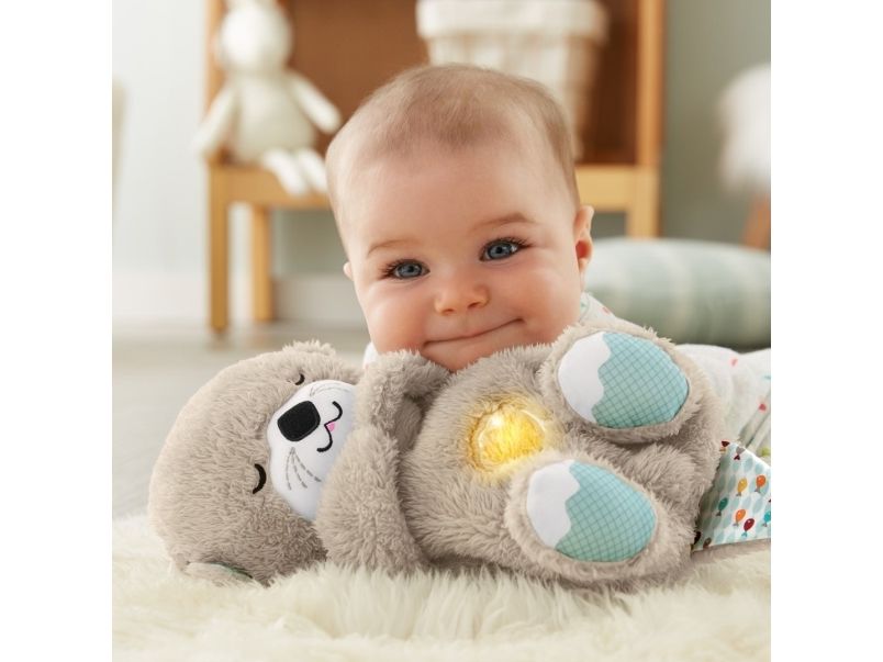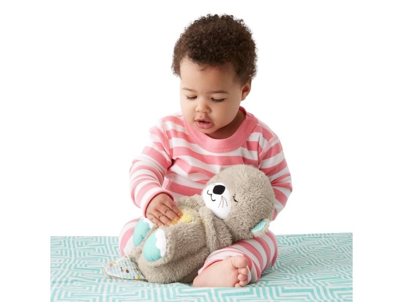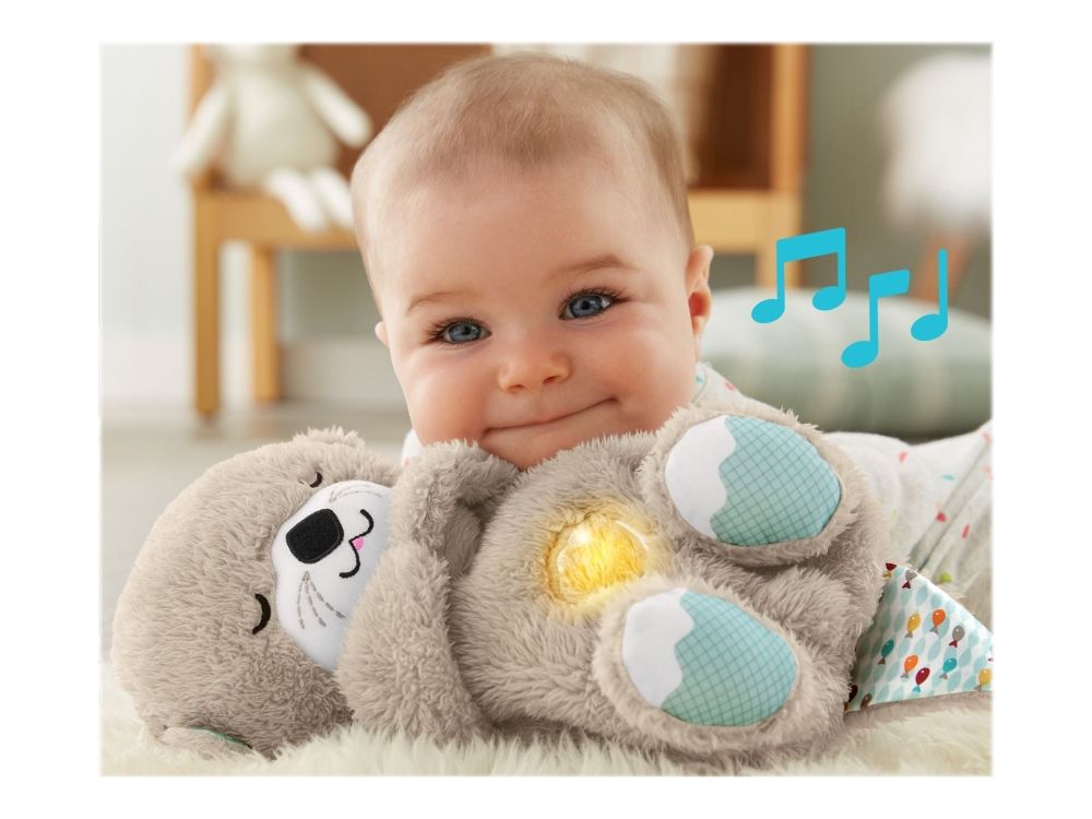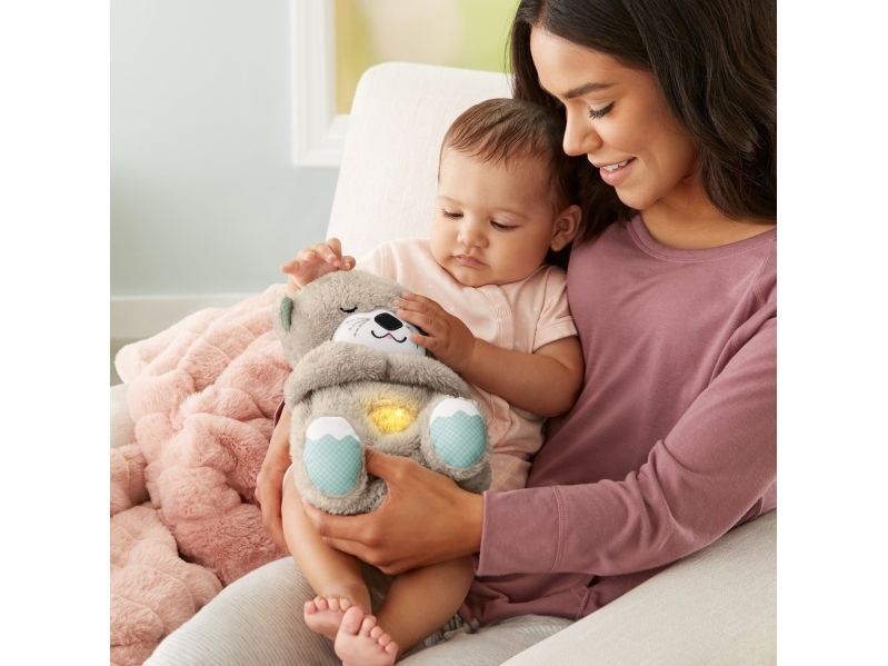 The Fisher-Price Soothe 'n Snuggle Otter is a unique plush soother that helps comfort your baby just like you do. Its soft belly moves up and down in a rhythmic motion that mimics breathing to help soothe your baby naturally, along with up to 30 minutes of calming music, sound effects, and soft lights. With its sweet face, super snuggly fabrics, and satiny tail, the Soothe 'n Snuggle Otter is a perfect cuddle friend for your baby.