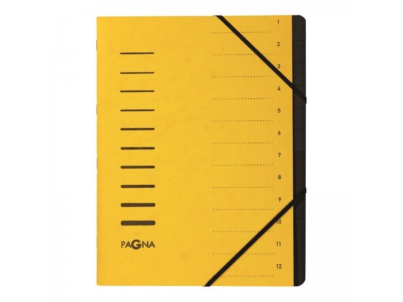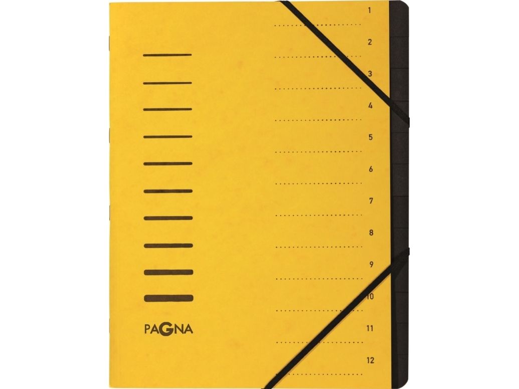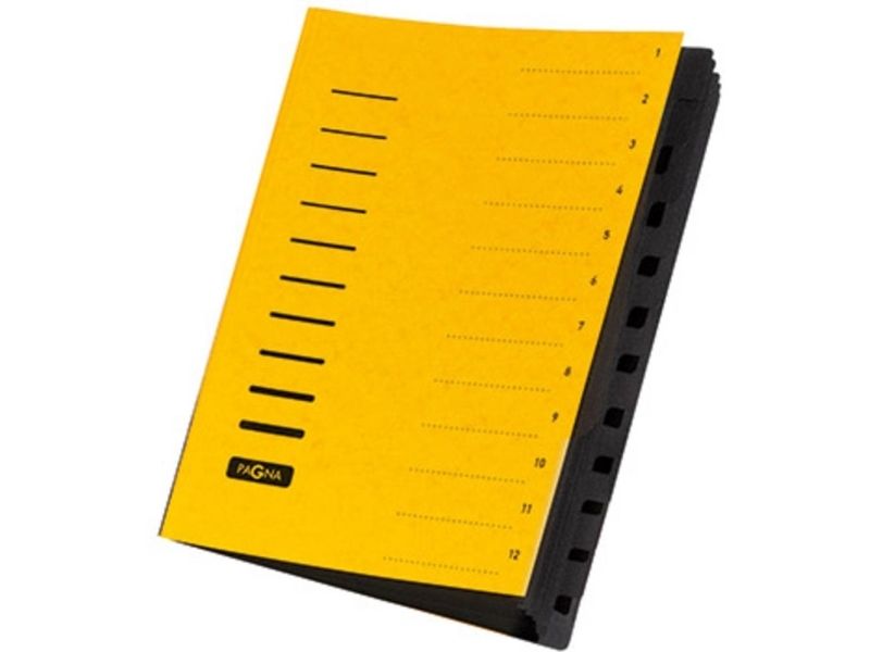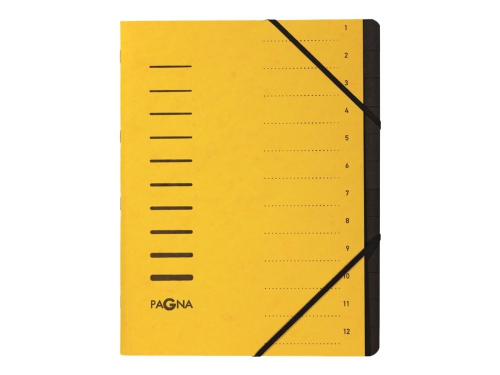 Pagna Office - Klassifikasjonsmappe - 12 rom - 12 deler - bokryggbredde: 5 mm - for A4 - med fliker - gul