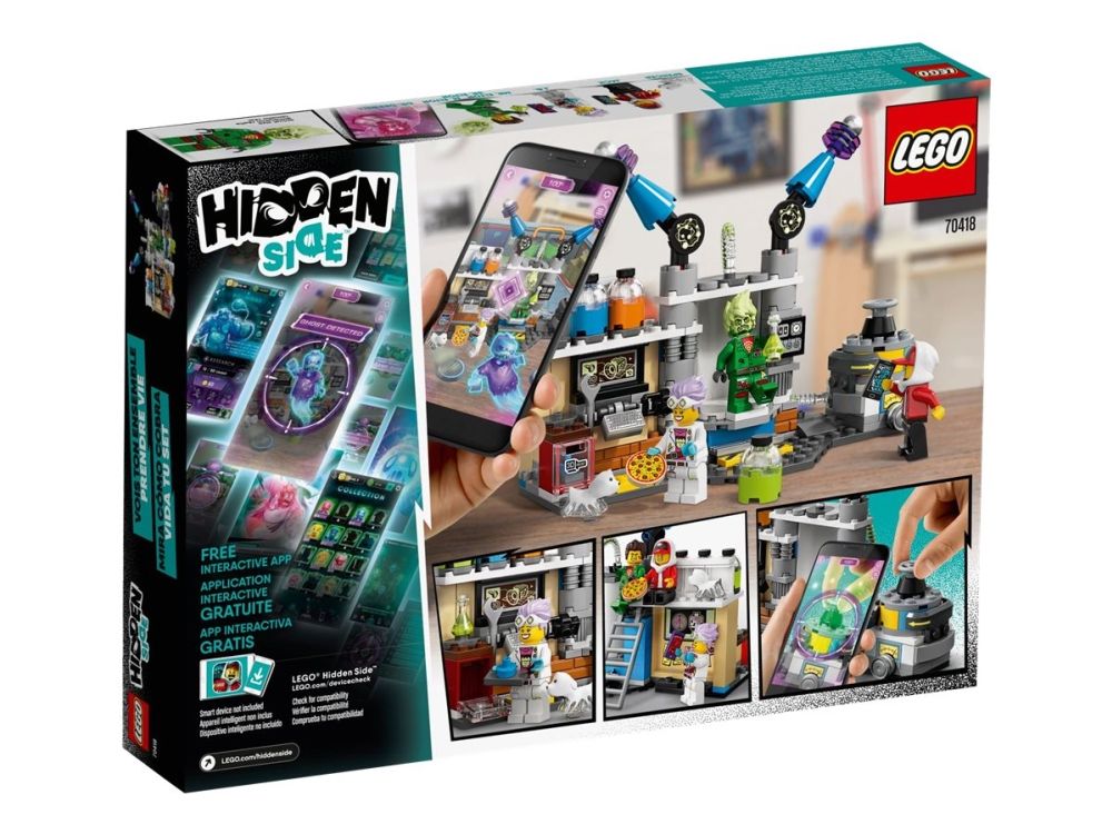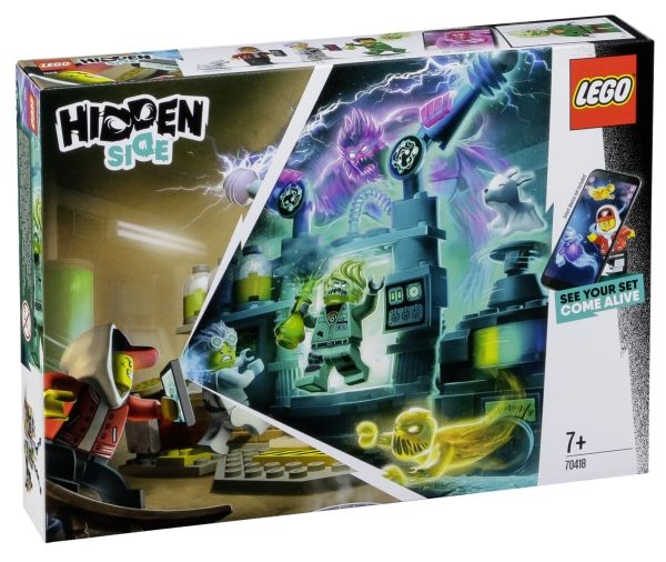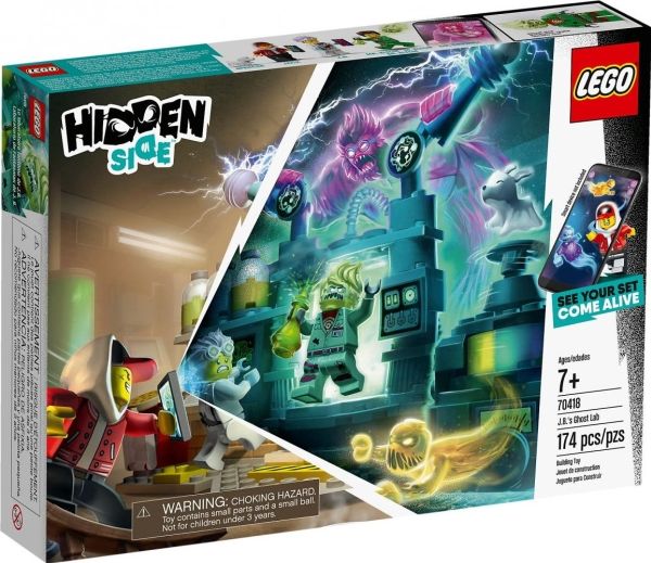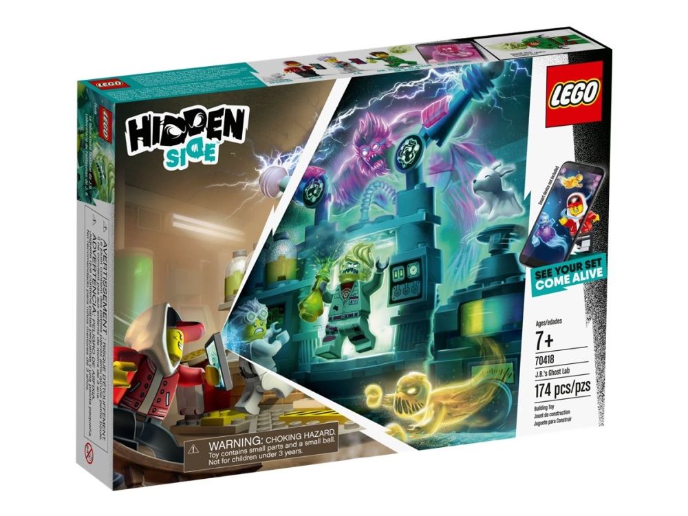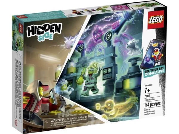 Immerse youngsters in an amazing AR play experience with LEGO Hidden Side 70418 J.B.'s Ghost Lab. Hidden Side delivers a different way to play with LEGO toys by combining a LEGO model with a game app for a fully interactive experience. Download the Hidden Side app and scan the model with a phone to make it come alive. Interacting with the model makes things happen in the app. And with continuous updates and different mysteries to solve, items to find, ghosts to defeat and tough boss ghosts to battle, this LEGO Hidden Side set takes LEGO play to an exciting dimension! J.B.'s Ghost Lab features a lot of cool tech details and scientific equipment inspired from the real world for hours of imaginative play. Kids will love to build and play with the mad scientist-inspired lab playset and defeat the ghost figure that's haunting the friendly janitor in the app. The hero, haunted janitor and scientist girl minifigures, and cute ghost dog figure add to the role-play fun.