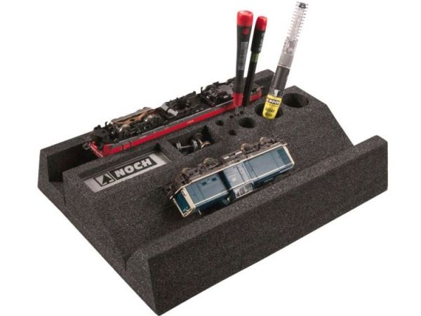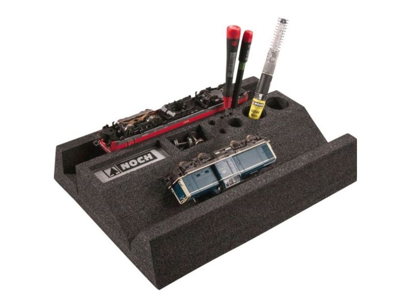 Developed by professionals for professionals, this is reflected in the many details of these Foam Train Service Trays. The PROFI Foam Train Service Tray has two hollows for your locomotives. In one, the locomotive can be clamped upside down in the soft foam. It is now easy to inspect from below, and gears and axles can be easily oiled. Locos and waggons can be placed sideways or diagonally upside down in the sloping tray. This allows side panels to be cleaned and engines and piston rods to be repaired, as well as many other servicing jobs.
