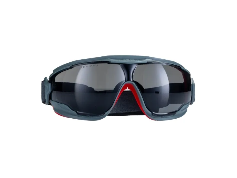 3M Goggle Gear 500 cyclopbriller GG50 1V rød-grå ramme grå tonede ruder gråt tekstil hovedbånd (kan tages af)