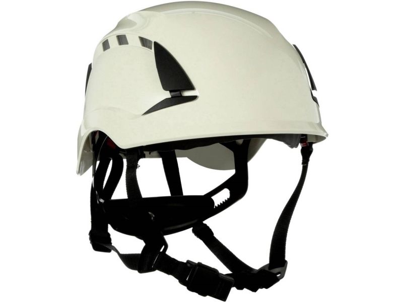 3M SecureFit sikkerhedshjelm X5001VE-CE, med udluftning 1000V CE Sikker, bekvem hovedbeskyttelse til arbejde i højden eller farlige arbejder i industrien · Bebanneringssystem med eksklusiv, patenteret 3M™-trykfordelingsteknologi · det enestående omstillingssystem, der er udviklet af 3M(TM) på 4-punkts-kagerremmen giver mulighed for at skifte mellem standarderne en 12492 (bjergbestigehjelme) og en 397 (industribeskyttelseshjelme) · 6-punkts skraldenøgle gør det muligt for bæreren, Med flere lodrette indstillingsmuligheder kan hjelmhøjden og pasform indstilles · designet uden kant orienteret mod klatrehjelmen giver mulighed for frit udsyn opad. Med 3M™ SecureFit™ sikkerhedshjelm X5001VE CE, får du en sikker og bekvem hovedbeskyttelse. Sikkerhedshjelm er velegnet til mange arbejdssituationer, både til arbejde i højden, men også på steder, hvor tunge maskiner kan anvendes, eller hvor der kan forventes andre farlige situationer.