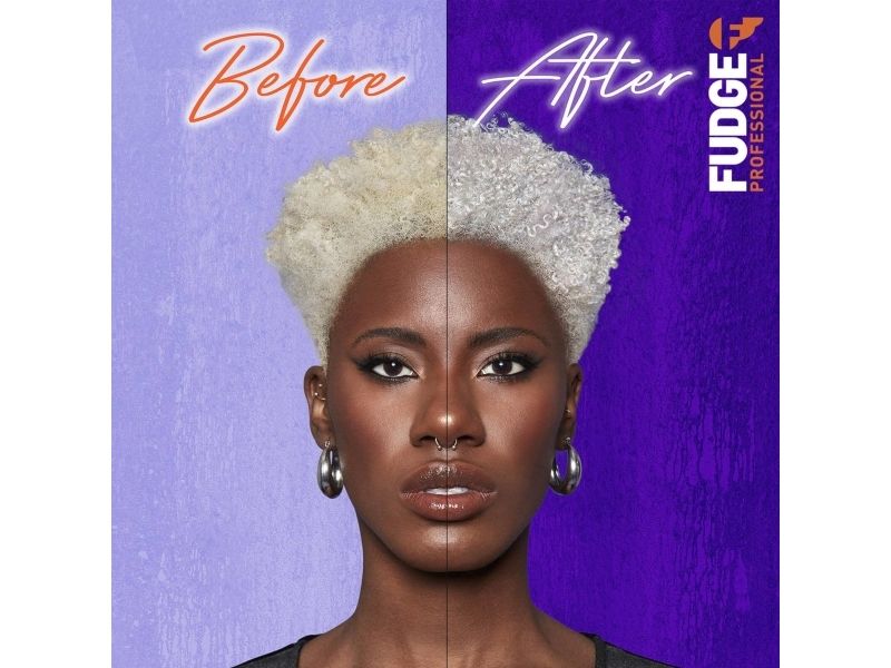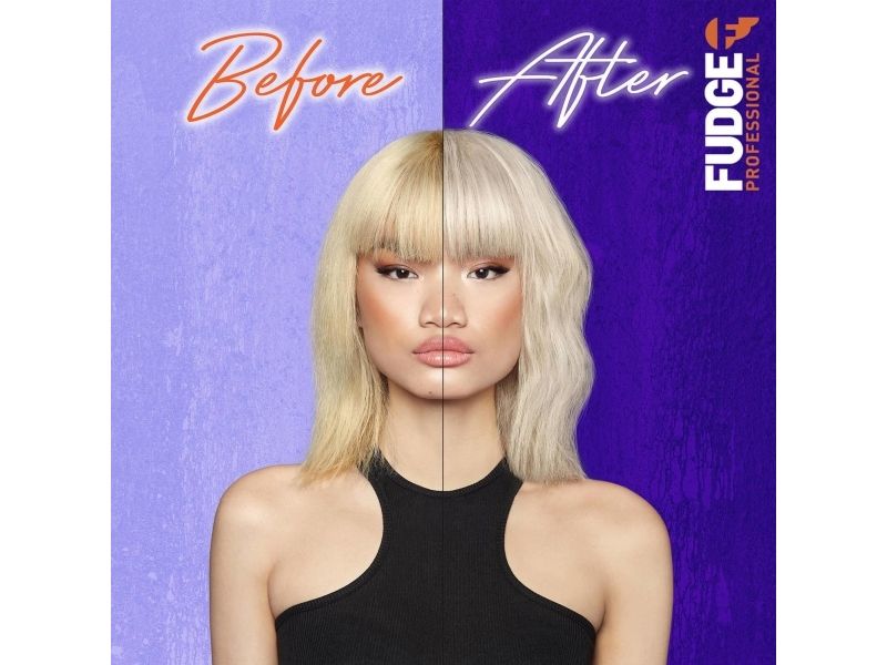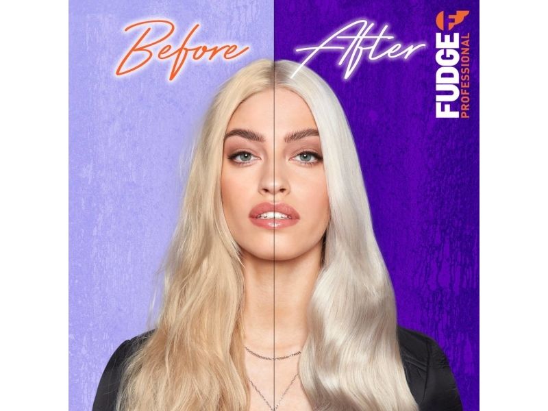 Fudge Professional Damage Rewind Recostructing Conditioner; gives you 95% stronger hair instantly* For hair that’s blonder, stronger and smoother. This dual-force conditioner contains our max-strength purple micro-pigments that instantly knock out brassy tones, whilst our unique Opti-PLEX™ technology reconstructs bonds throughout the hair and the specialised HairGuard™ technology targets cuticles to seal them shut in just ONE wash!