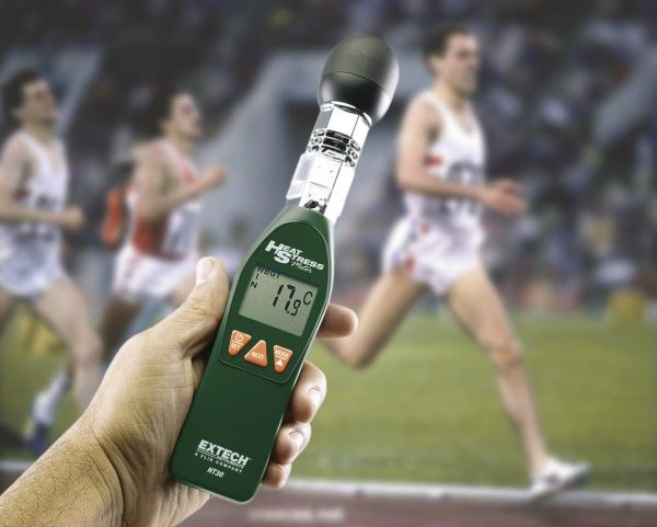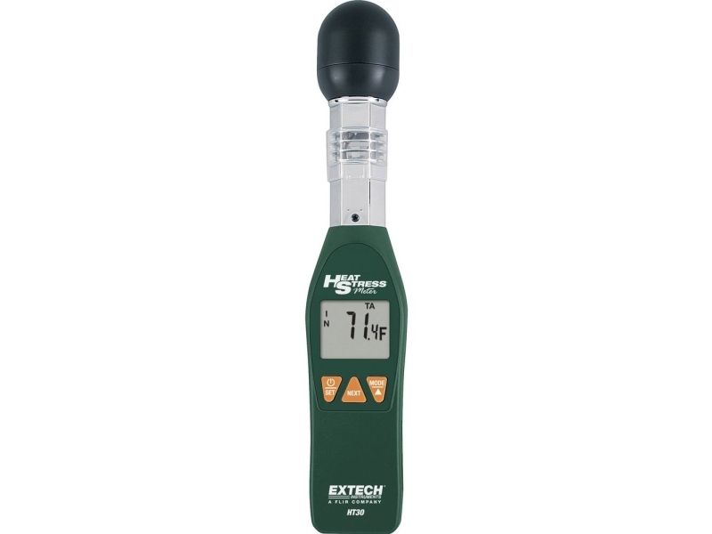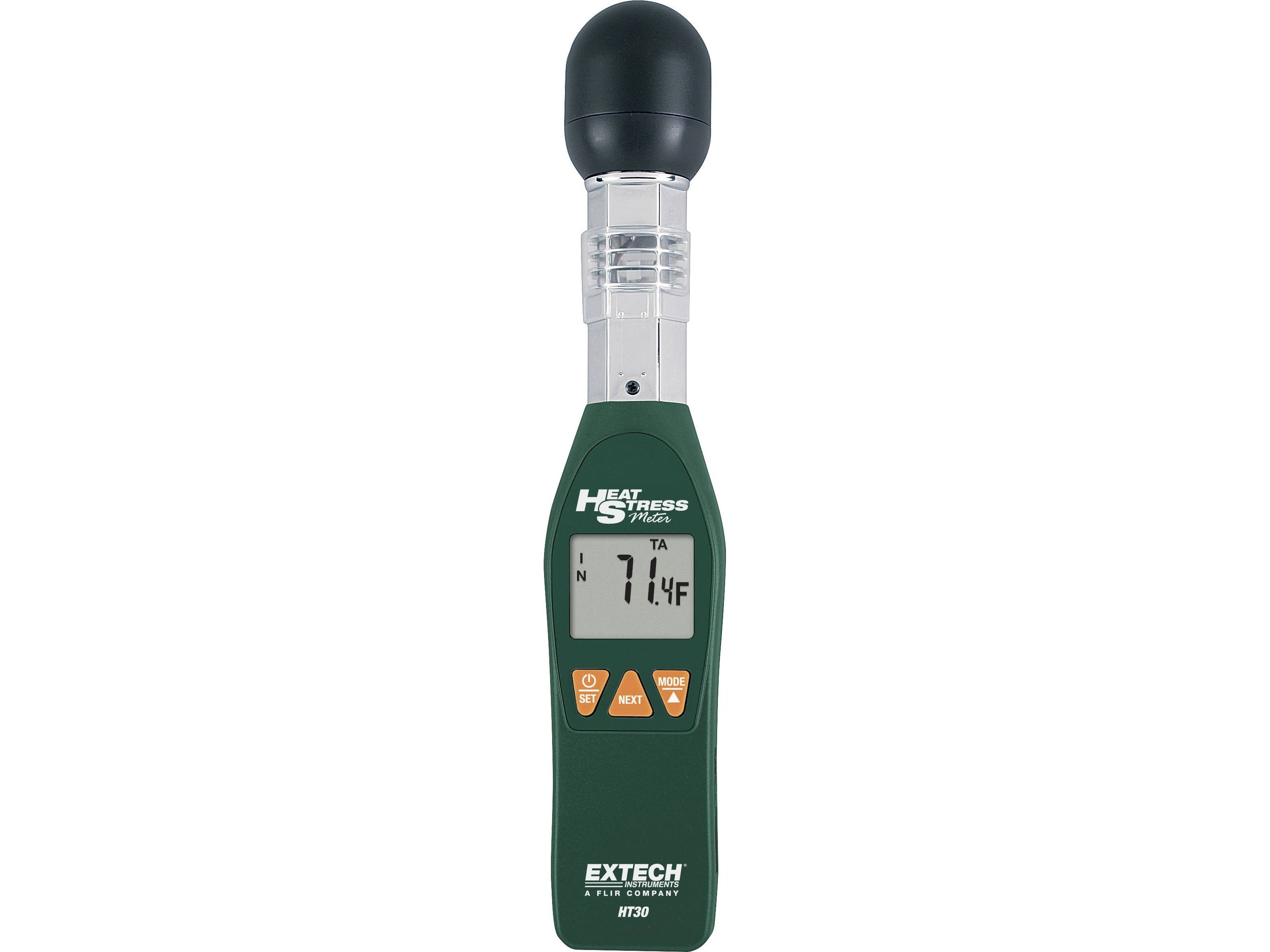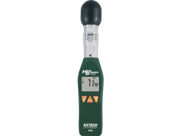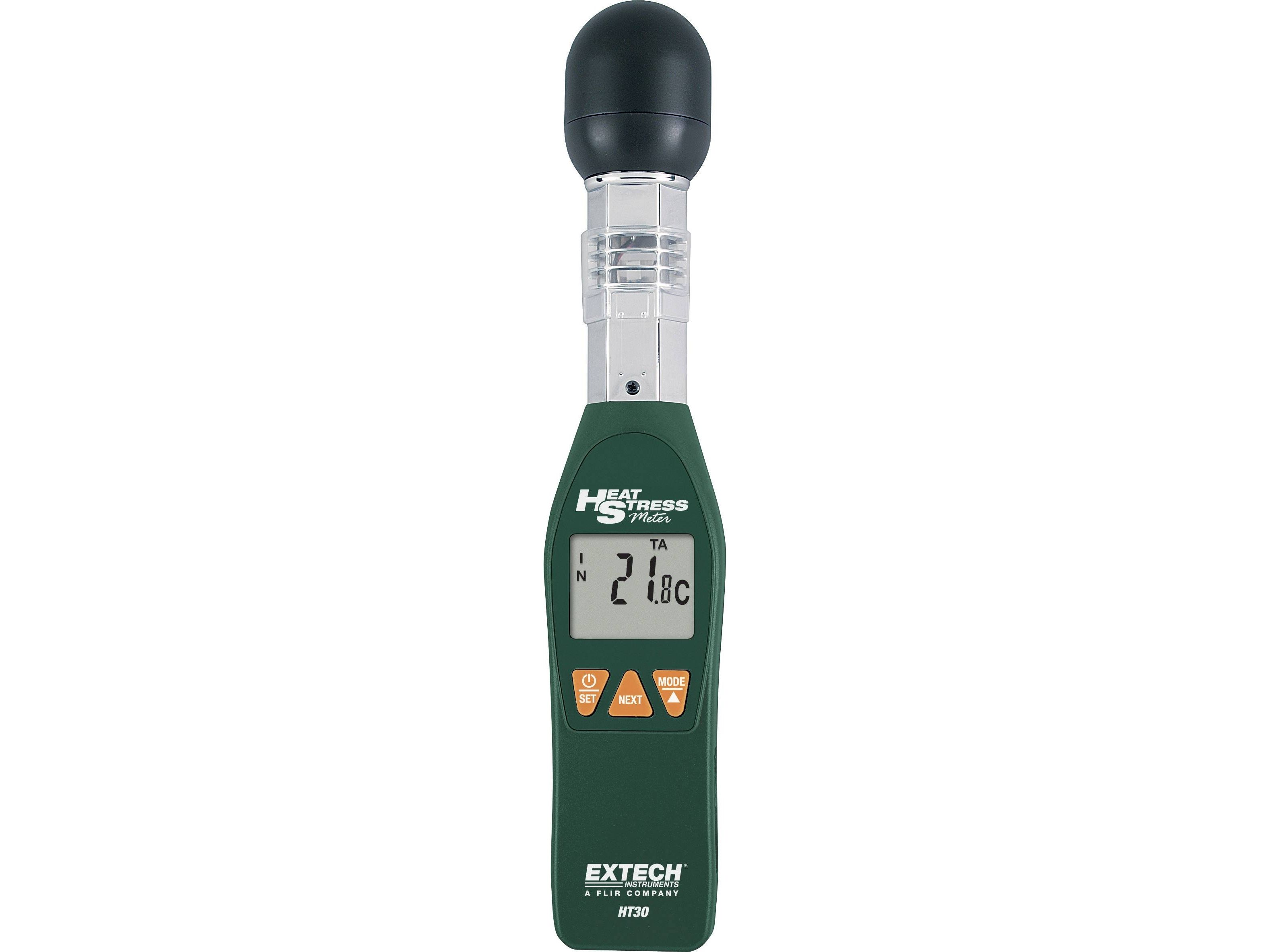 Dette måleapparat måler og viser varmestress-indekset (WBGT), som beskriver varmeoplevelsen, når man kombinerer luftfugtighed med temperatur, luftstrømning og direkte eller udstrålende sollys. Black Globe (sort kugle) temperatur (TG) kontrollerer virkningen af direkte solstråling på en ubeskyttet overflade. Den måler også lufttemperaturen (TA) og relativ luftfugtighed (RH). Yderligere funktioner omfatter: Valgbare måleenheder °F/°C, automatisk slukning med låsefunktion og et indbygget RS-232-interface med valgfri 407752 Windows® software.