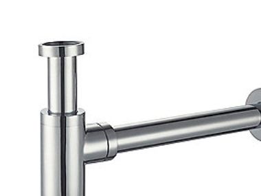 Design pungvandlås - 1 1/4 rund model inkl. rør og rosetter. Forkromet