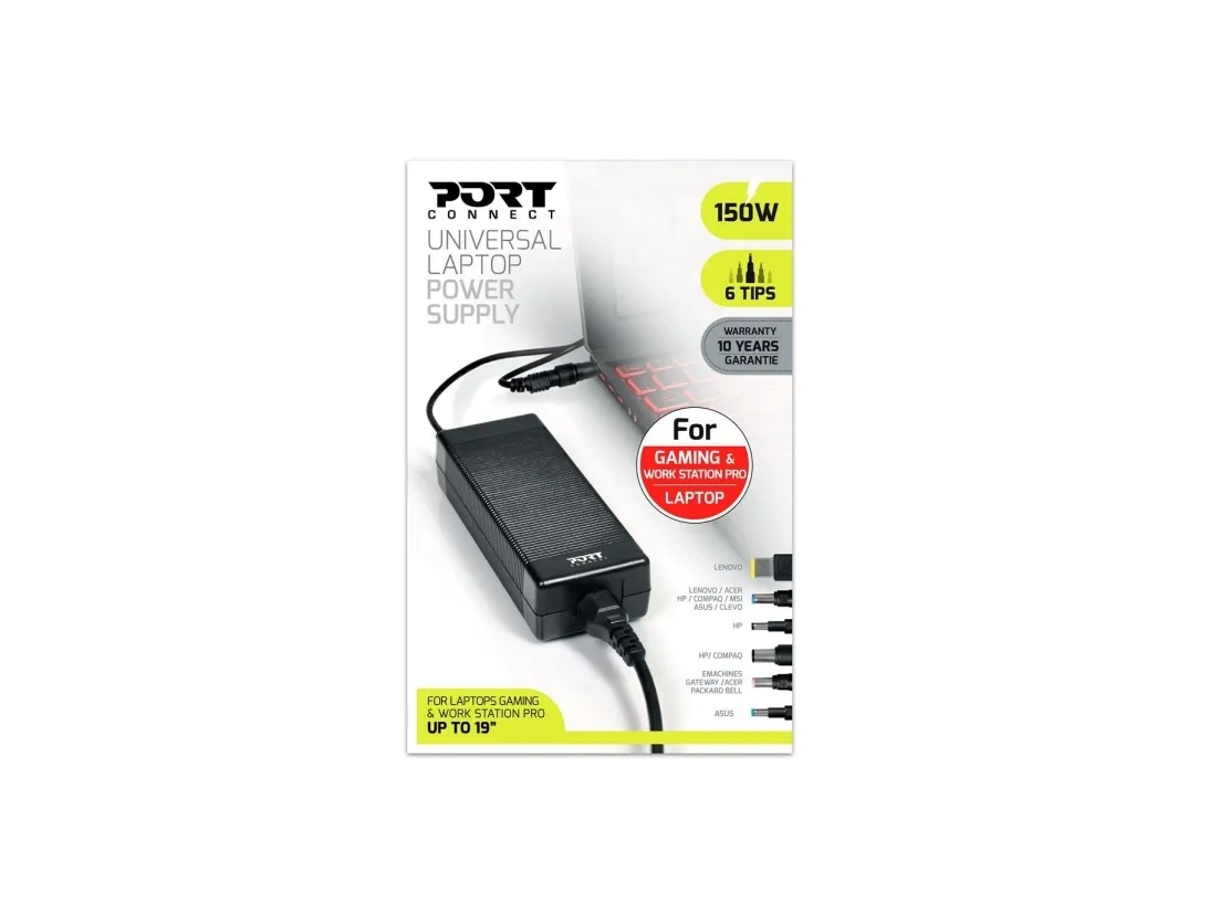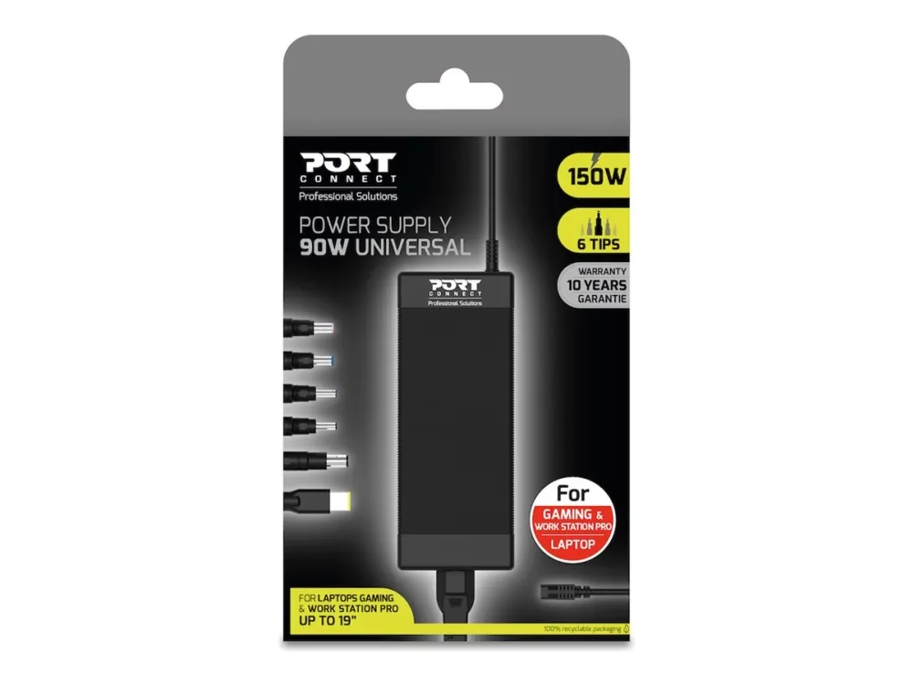 The PORT Connect power adapter from PORT Designs is a high-performance solution designed to meet the power needs of your electronic devices. With a robust 150 W output and 19.5 V provided, it ensures your devices are efficiently charged and ready to use. Its compatibility with AC 100-240 V makes it an ideal companion for both local and international travel, eliminating the worry of keeping your devices powered in different regions. The inclusion of two power cables, measuring 1.8 m and 1.2 m, offers flexibility and convenience in setup, allowing you to easily connect to distant power outlets. Safety is a priority with this adapter, featuring overvoltage protection to shield your devices from unexpected power surges. Whether at home or abroad, the PORT Connect power adapter is your reliable power source, ensuring your devices remain safe and fully charged.