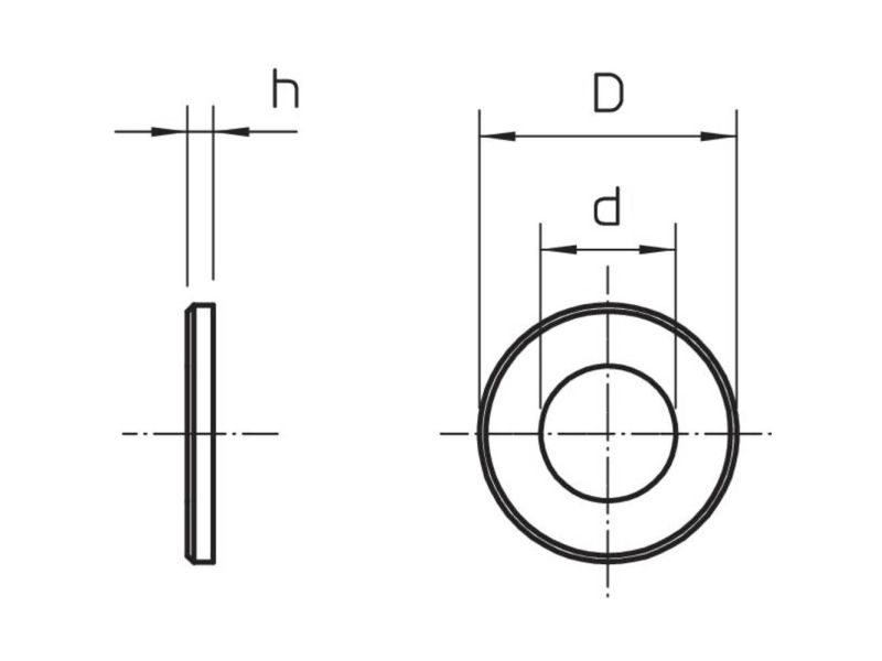Mellemlægsskiver, udførelse iht. ISO 7089 uden fase (tidligere DIN 125-A)