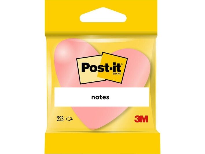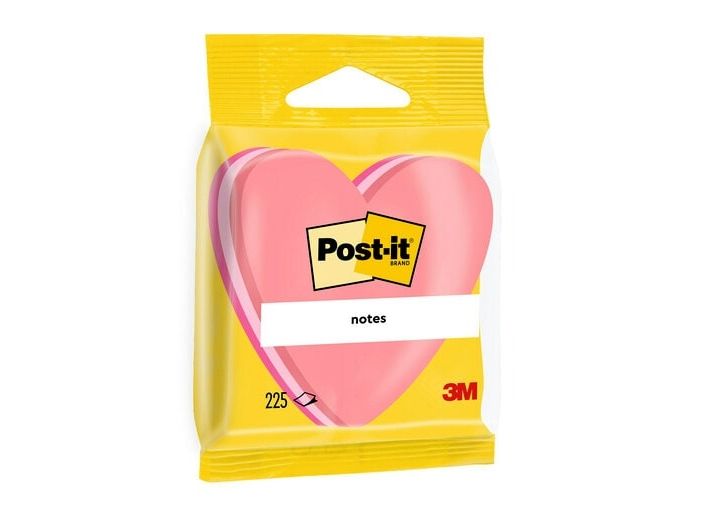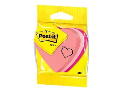 Post-it 2007H - Noter - 70 x 70 mm - hjerte - 225 ark - rosa, fiolett, rosa