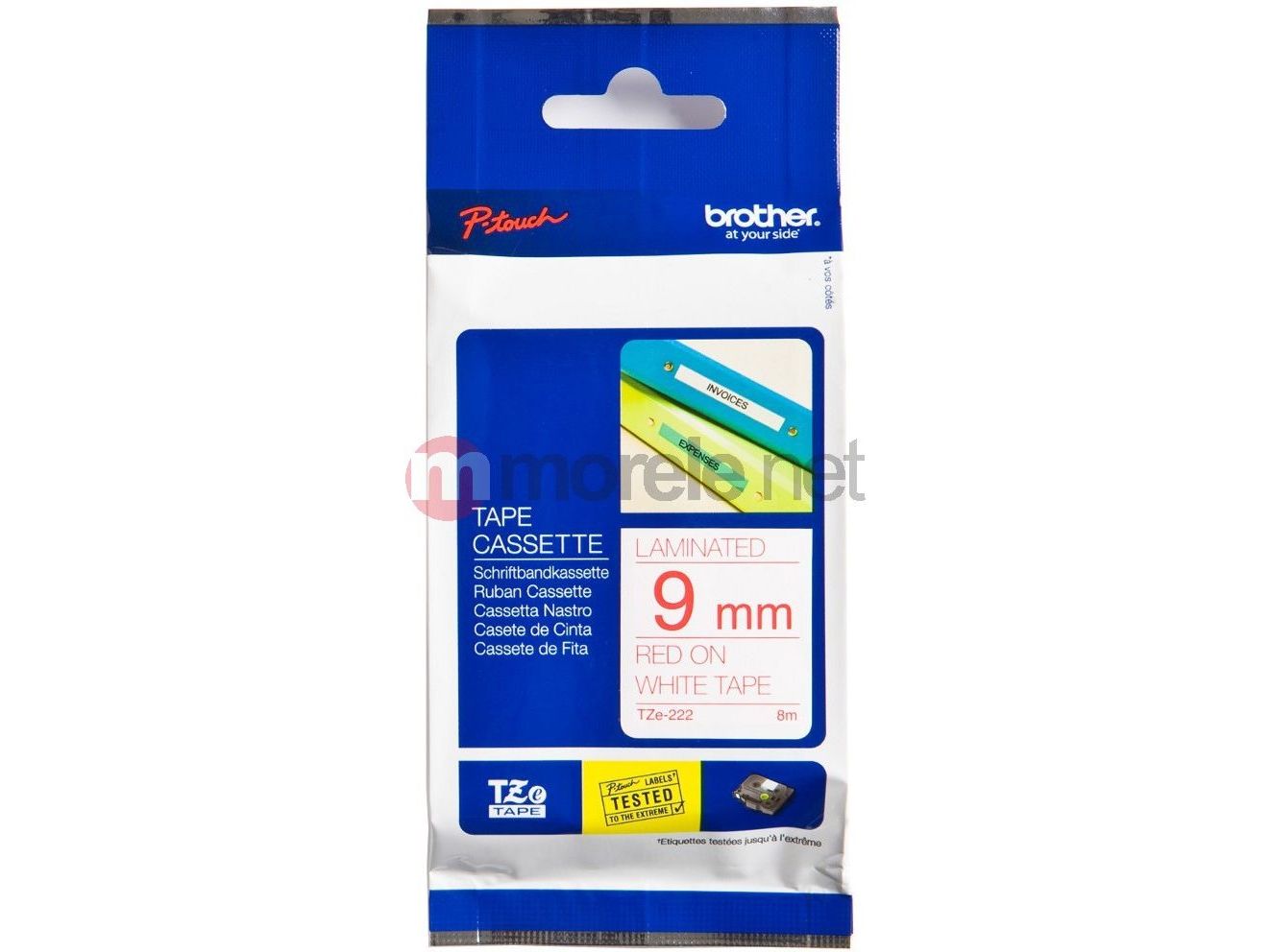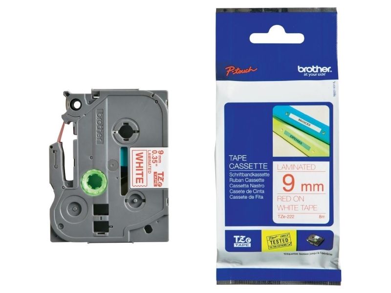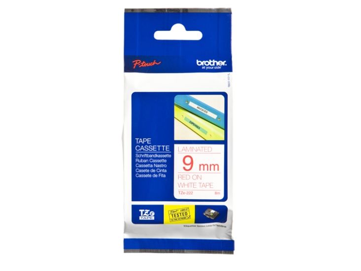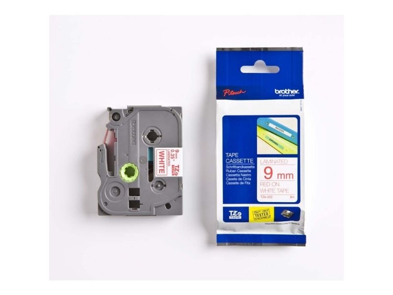 Brother TZe-222 - Rødt på hvitt - Rull (0,9 cm x 8 m) 1 kassett(er) laminert teip - for Brother PT-D210, D600, H110, P750, P950; P-Touch Cube PT-P300; P-Touch Cube Pro PT-P910