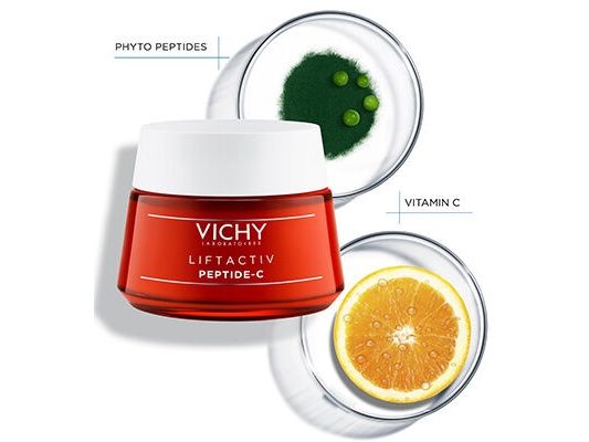Discover LiftActiv Peptide-C, an advanced anti aging moisturizer to help correct multiple signs of aging including wrinkles, dull skin, loss of contour definition and loss of firmness. The anti aging moisturizer formula combines a cocktail of highly recommended derm-grade ingredients Phyto Peptides, one of the first of plant origin, Vitamin C and Vichy Mineralizing Thermal Water to visibly reduce wrinkles, brighten and diminish the look of discoloration. Jawline contours look improved. Skin feels firmer and is hydrated for 48-hours.