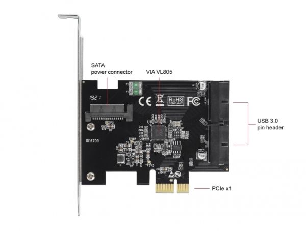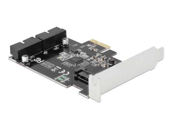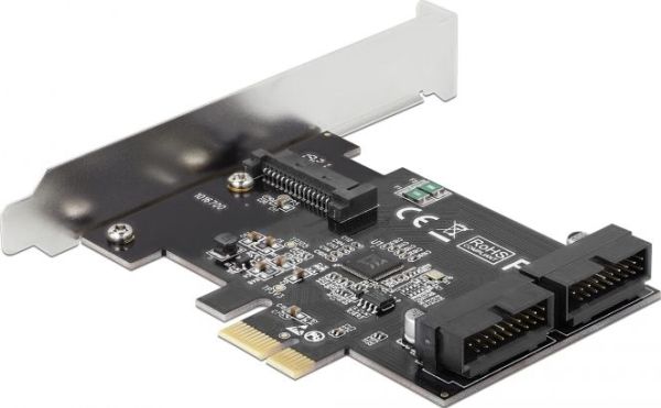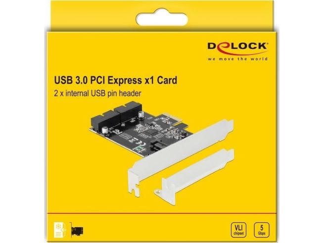 This PCI Express card by Delock expands the PC by two internal USB 3.0 pin headers. Different USB devices, such as docking stations, card readers, external enclosure etc., can be connected to the card.