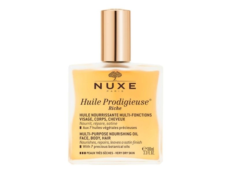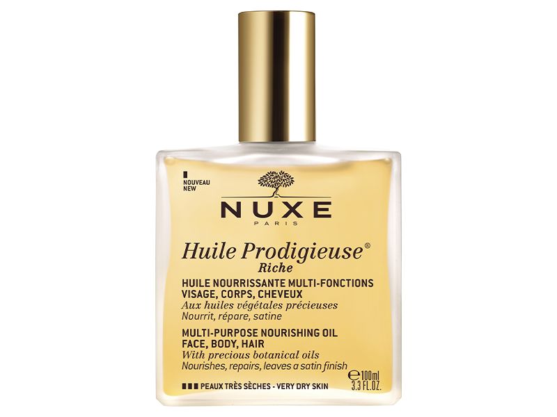 This nourishing oil brings very dry skin the inimitable pleasure of Huile Prodigieuse® in an enriched version for even greater comfort. A product to nourish your glow for beautifully soft skin and reconnection with your senses. It nourishes and repairs the face, body and hair in a single step, leaving no oily finish thanks to its rich ultra-sensorial texture with a non-oily and non-sticky finish. Its addictive sun-kissed scent of warm sand holds the promise of radiant sensuality. Skincare formulated and produced in France.