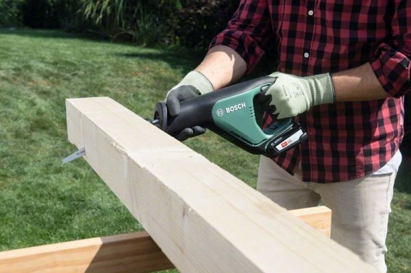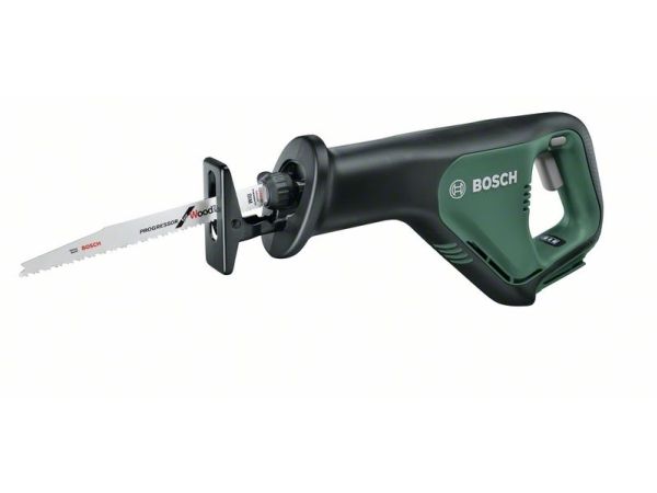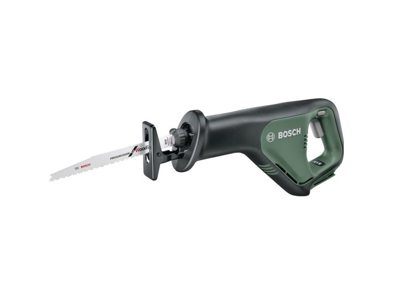 Batteri-sabelsav AdvancedRecip 18 uden batteri Lithium-Ionen teknologi · SDS-savklinger for hurtig og nem udskiftning af savklinger · Bosch Low Vibration · Softgrip. Takket være enkel håndtering ideel til groft snit både indendørs og udendørs. Ergonomisk design til flere grebpositioner. Takket være masseudligning kun lave vibrationer til nem håndtering. Som skabt til skæring i tykke grene og af kaminer træ eller til flugtende snit på vægge. Til dybe snit i træ og snit i stål, plast, spånplader, gummi eller gipskarton. SDS til hurtig og nem udskiftning af savklinger. Power for ALL: et batteri og en oplader til det komplette Home & Garden enhed system.