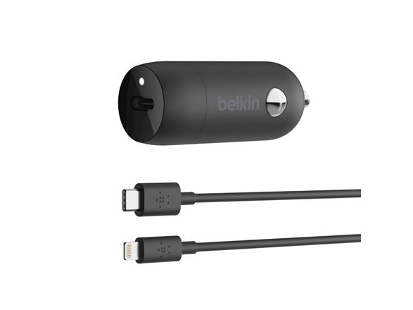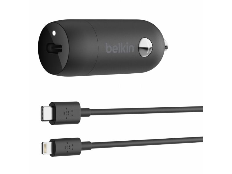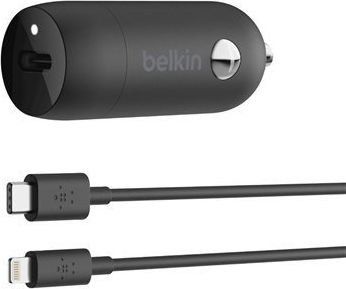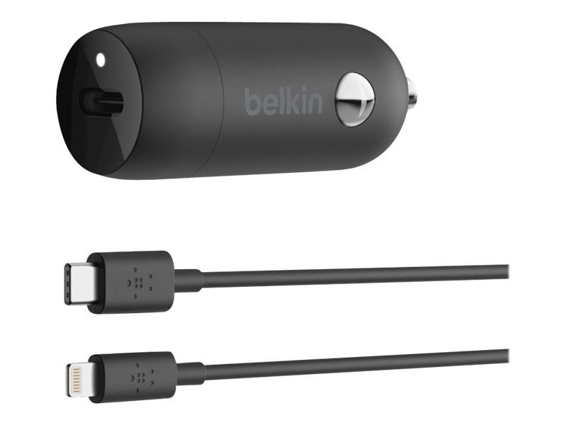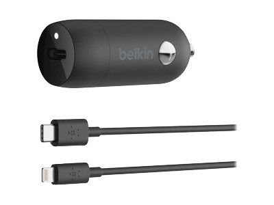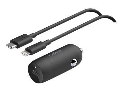 Belkin BoostCharge Car Charger - Bilstrømadapter - 18 watt - 3.6 A (24 pin USB-C) - på kabel: Lightning - svart
