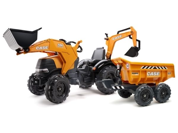 Falk Toys er et fransk firma fra 1947 og har specialiseret sig i at fremstille underdørs legetøj såsom pedal traktorer og atv'er til børn mellem et og syv år. Produkterne er produceret i Frankrig i meget høj kvalitet. Alle produkterne gennemgår grundige tests og opfylder selvfølgelig EU sikkerhedskrav. Case IH pedal traktor til børn 3-7 år med fuldt operationelt rendegraver, roterende sæde og frontlæsser. Kvalitet fra franske Falk Toys (produceret 100% i Frankrig) Fra 3 til 7 år Længde: 225 cm Størrelse: 225 x 60 x 79 cm Vægt: 19 kg Max person vægt: 50 kg Emballagemål: 113 x 59 x 68 cm