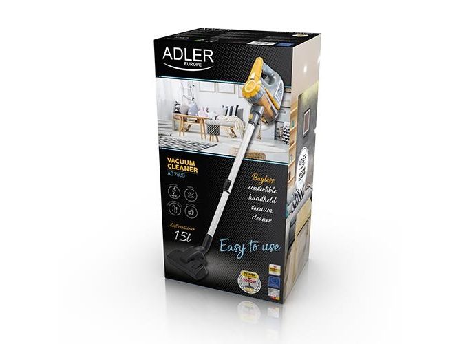 Hand-held vacuum cleaner ADLER AD 7036 is a professional device with high-efficiency ideal for convenient cleaning of many rooms and the interior of the car. A high-quality bagless vacuum cleaner will work well in every home. The working range up to 7 meters will allow you to vacuum the entire apartment or office without having to look for sockets. Comfortable grip and low weight of the device make it easy to move between cleaned rooms. You do not have to worry more about scratching floors or lack of space to store the vacuum cleaner!