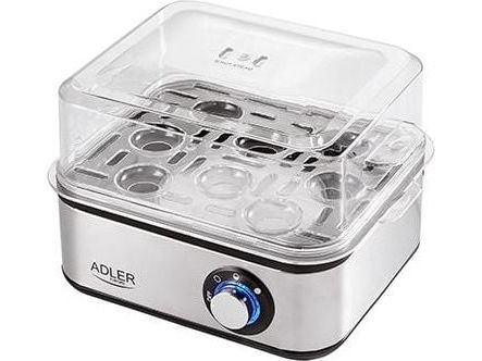 Adler AD 4486, 8 egg, Plast, Hard, Medium, Soft (myk), Sort, Satin Stål, Gjennomsiktig, 800 W