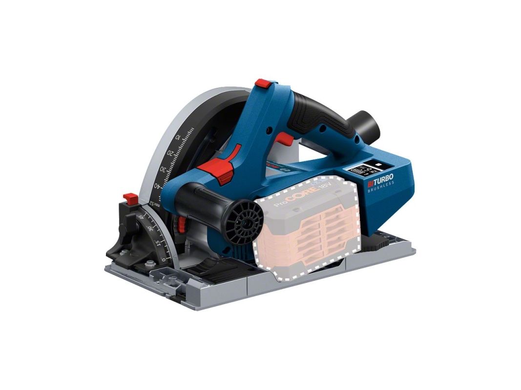 The GKT 18V-52 GC Professional cordless plunge saw delivers corded performance at superior compactness in Bosch's 18V category. Its BITURBO Brushless technology and ProCORE 18V provide maximum cordless cutting performance fully equal to corded 1620W plunge saws. The saw offers superior mobility due to its uniquely compact design allowing for operation with only one battery. Its very compact tool design enables the close distance between the saw blade and the wall at only 10mm. This tool is intended for format cutting and plunge cutting in wood, wood composites, board, and panel materials, aluminum, and acrylic glass.