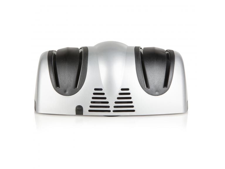 With knife guide that positions knives in the perfect sharpening angle