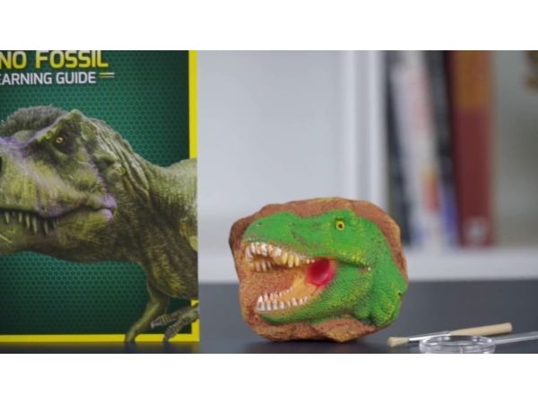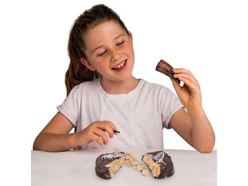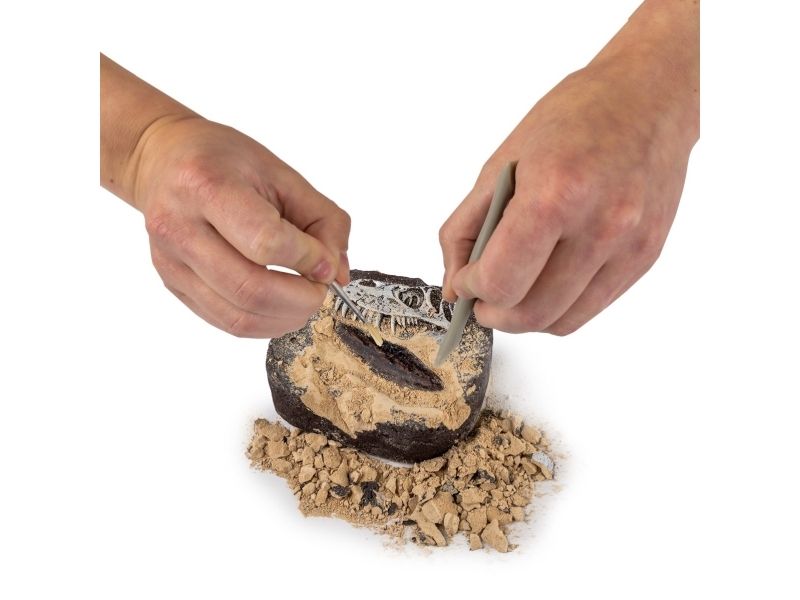 Grav og find ægte dinosaur fosiler! Der medfølger gode redskaber til arbejdet og en guide skrevet af lærere hvor man kan lære en masse nyt.