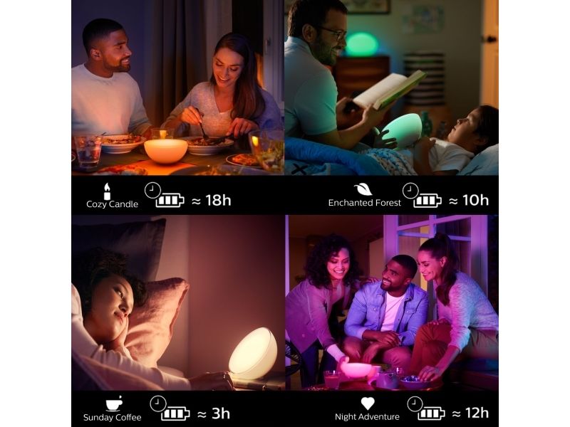 Ta med deg smartlyset ditt med den bærbare Hue Go. Med Hue Go kan du skape den perfekte stemningen, fra en krusning av farger til et inspirerende midtpunkt. Fungerer både som en frittstående lampe og som en del av et smartlyssystem med Hue Bridge.