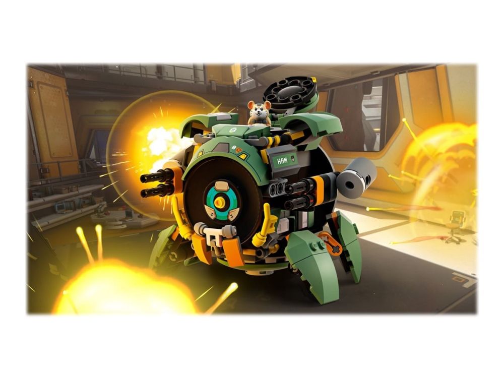 Immerse your favorite Overwatch fan in epic missions with this LEGO Overwatch set. Based on the internationally acclaimed team-based action game, this Overwatch toy set transforms from an iron-clad battle mech to a high-speed ball. A fan favorite, Wrecking Ball is piloted by Hammond, a resourceful hamster who pops up from the cockpit just like in the game. With Quad Cannons and four extractable limbs that fold out when transforming into the mech toy, youngsters will love playing with this instantly recognizable model and Overwatch character. Older fans will be excited to show their passion for Overwatch by displaying the set near their gaming setup for all their friends to see.