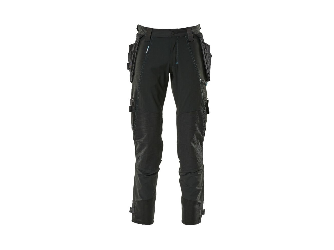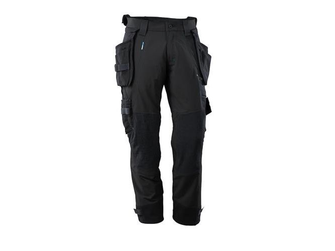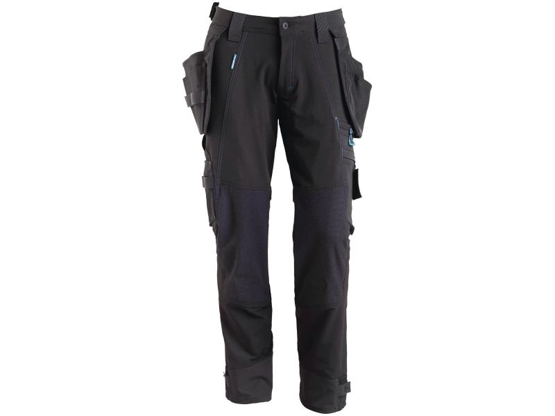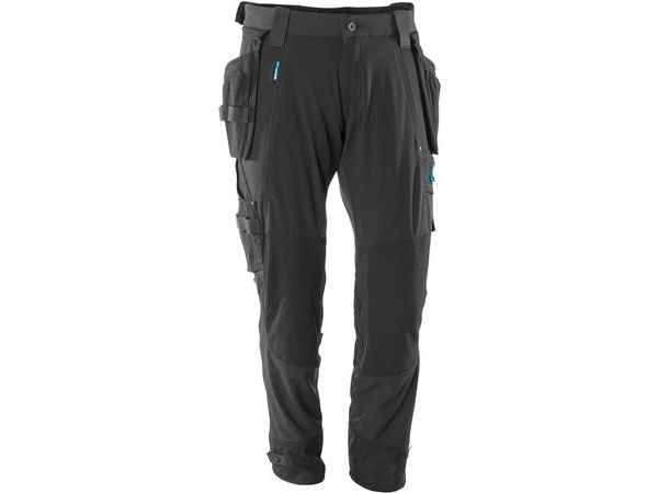 Has a water-repellent finish. Ultimate stretch fabric that is lightweight and highly durable. The fabric is hardly felt against the skin as the pockets are integrated in the design. Double stitched seams on leg and crotch. Low waist. Ergonomically formed trouser leg. Belt loops. Fly with zip. Detachable holster pockets of durable CORDURA® - the outermost section of the right holster pocket is reinforced at the bottom with puncture resistant Kevlar®. Front pockets. Back pockets. Tool strap at both sides of waist. Thigh pocket with phone pocket with magnetic fastening and integrated ID card holder. Detachable ID card holder. Ruler pocket of CORDURA® with extra pockets. Durable and puncture resistant kneepad pockets of CORDURA®/Kevlar®/Dyneema®, elasticated and ventilated. Press stud adjustment at foot. Reflectors. We recommend 00718-100, 50451-916 & 20118-915 kneepads for this model. Co-certified together with kneepad type LONG in accordance with EN 14404.