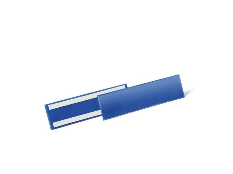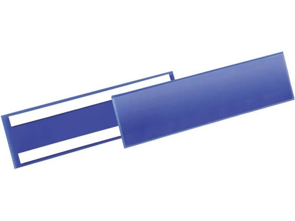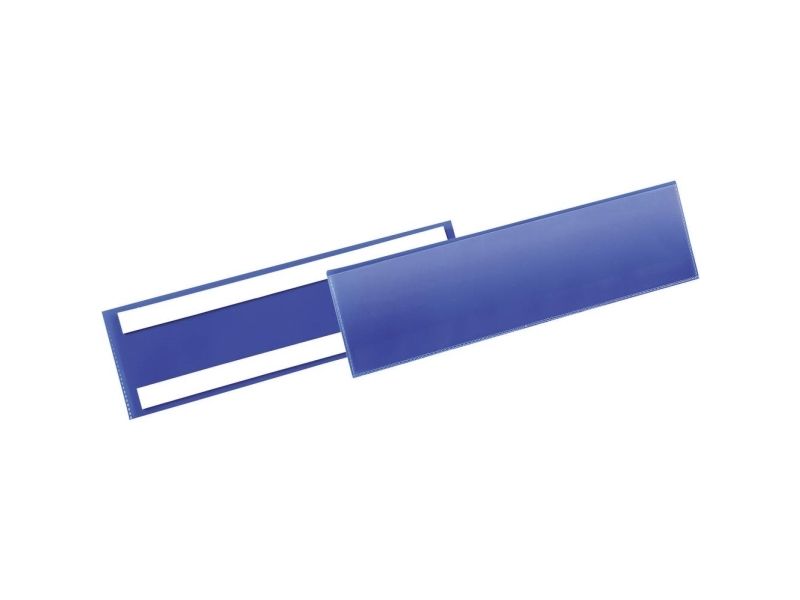 • Lagerlomme med to permanent klæbende strimler på bagsiden • Til plastbeholdere, træ- og papkasser • Blå bagside og transparent forside af slidstærkt polypropylen • Kopisikker og egnet til brug med scannere • Indstik kan skiftes let og hurtigt • Indvendigt mål: 297x74 mm (b x h)