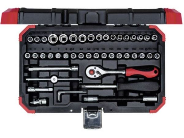 - 2C reversible ratchet 1/4", lever for reversing clockwise/anticlockwise direction, push-button release, fine-toothed, oval head, 2-component-handle for ease in handling, for sockets