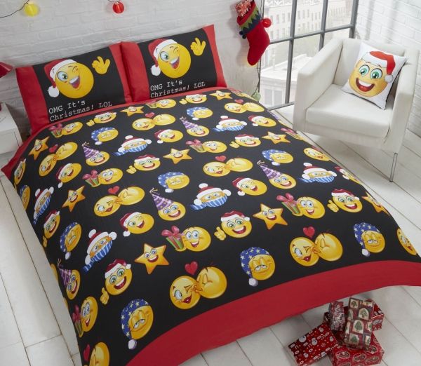 Dette sjove design er perfekt til at tilføje et strejf af modemstil til dit hjem denne jul. Dette design er fuldt vendbart og har alle dine foretrukne humørikoner vist på fed sort og hvid baggrund, en lys og farverig tilføjelse til ethvert soveværelse.