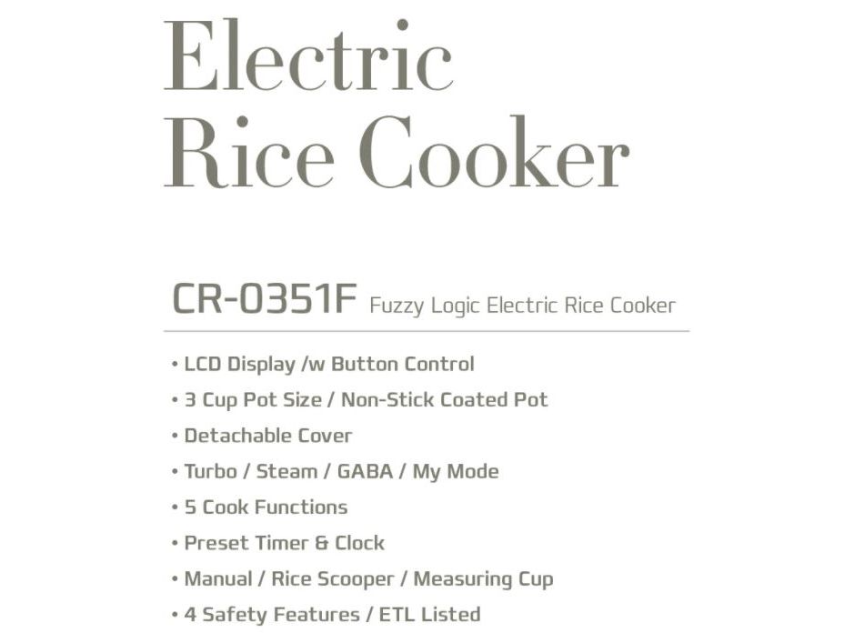 Turbofunksjon, dampefunksjon, MyRecipe function, GABA brown rice function