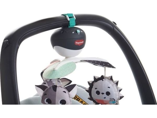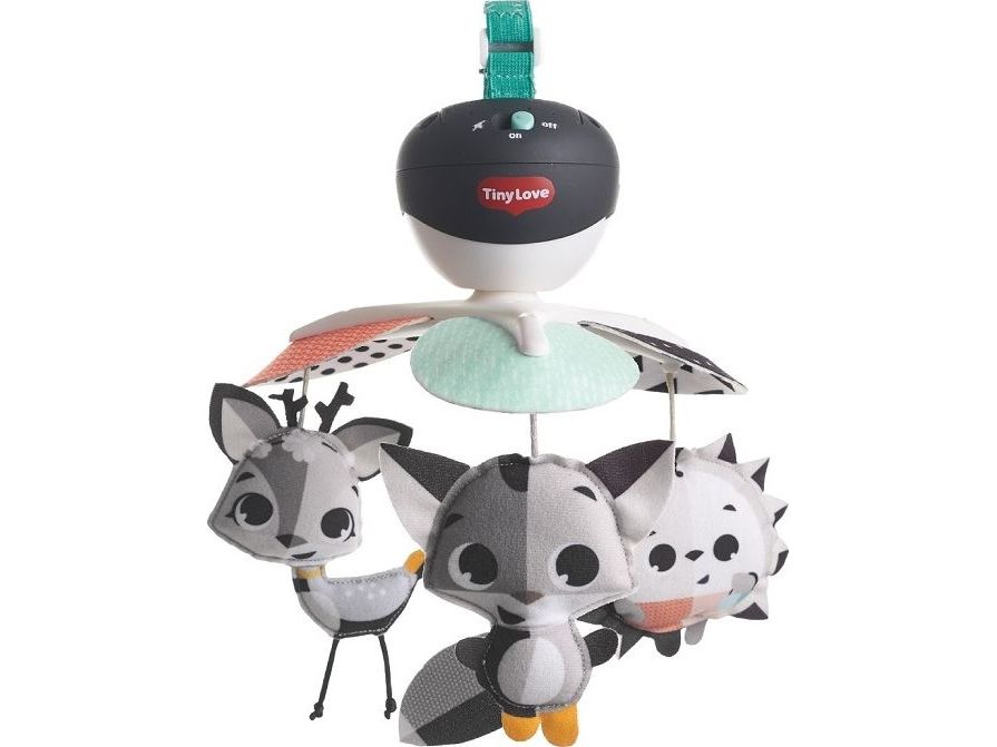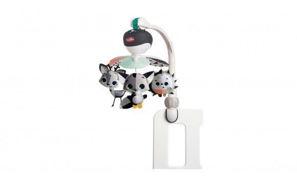 Point out to the smiling characters hanging on the mobile to start building baby’s vocabulary: “Where is the Christopher the Fox? Here he is! Where is Marie the Hedgehog? There she is!”