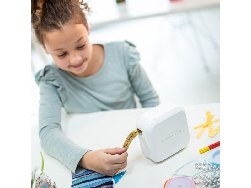 Med denne bærbare Bluetooth-etikettskriveren kan du designe og skrive ut stilige bånd og holdbare etiketter til deg og din familie. Den fungerer direkte fra Android- eller Apple-smarttelefonen din ved hjelp av gratisappen P-touch Design&Print.