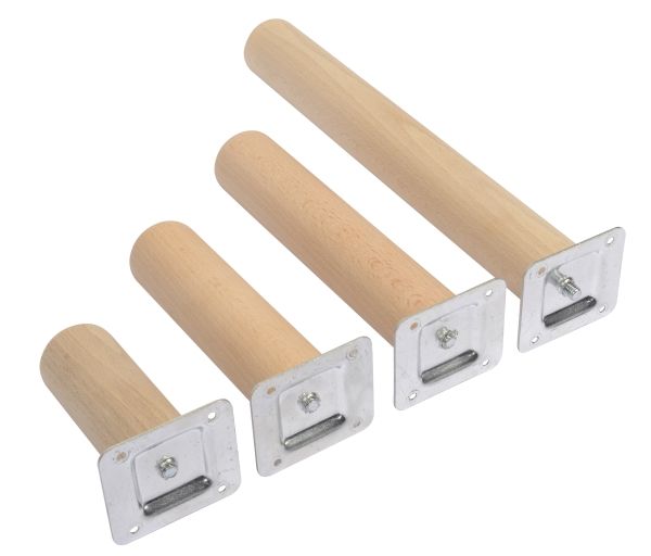 Vores bordben i bøgetræ med lige monteringsplade og M8-bolt er sæbebehandlet og poleret for at undgå, at træet falmer med tiden.