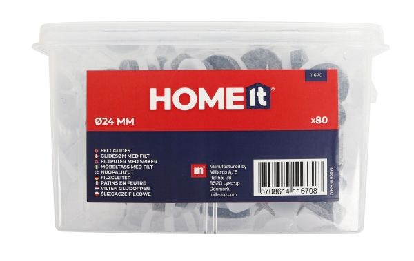 HOME It® glidesøm med filt Ø24 mm 80 stk grå